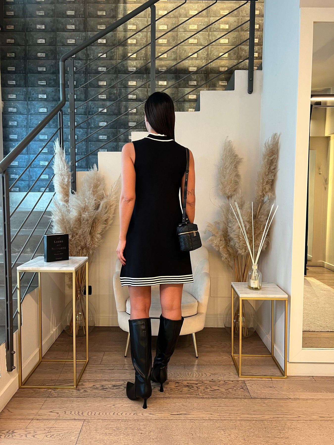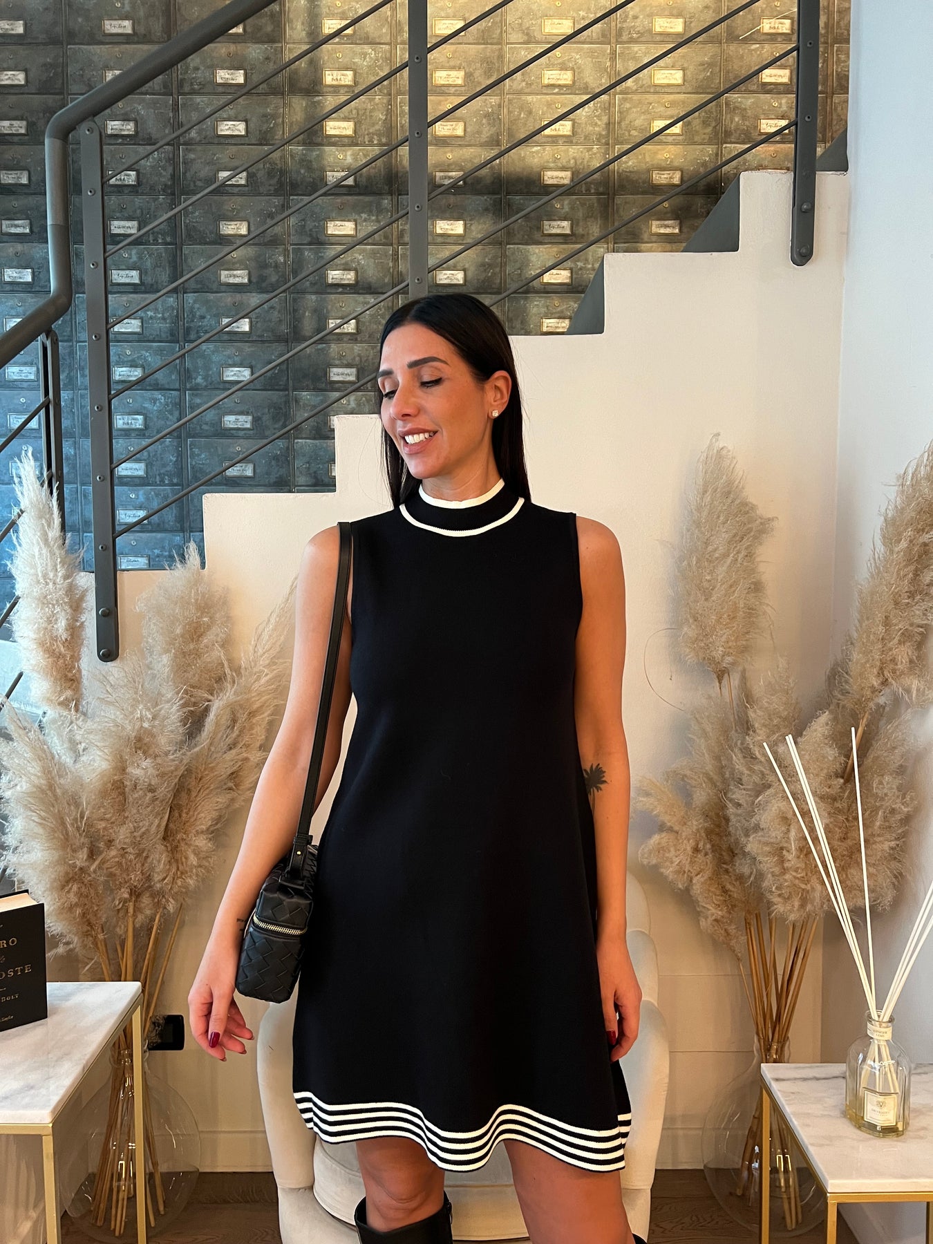 Abito in viscosa elasticizzata dal taglio svasato con dettaglio bordi. Veste dalla 40 alla 44