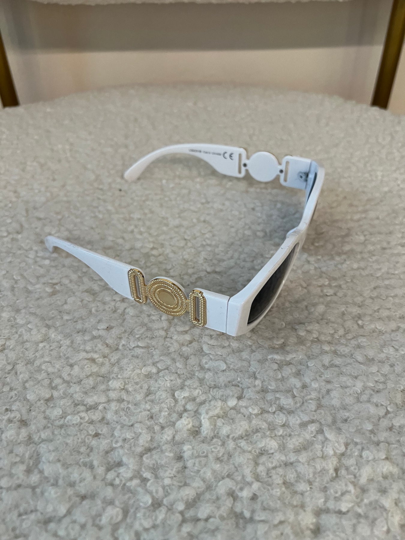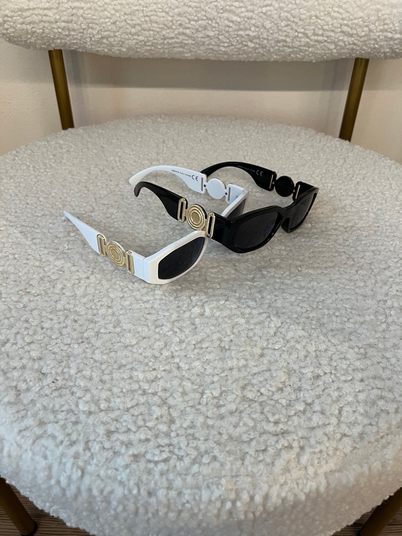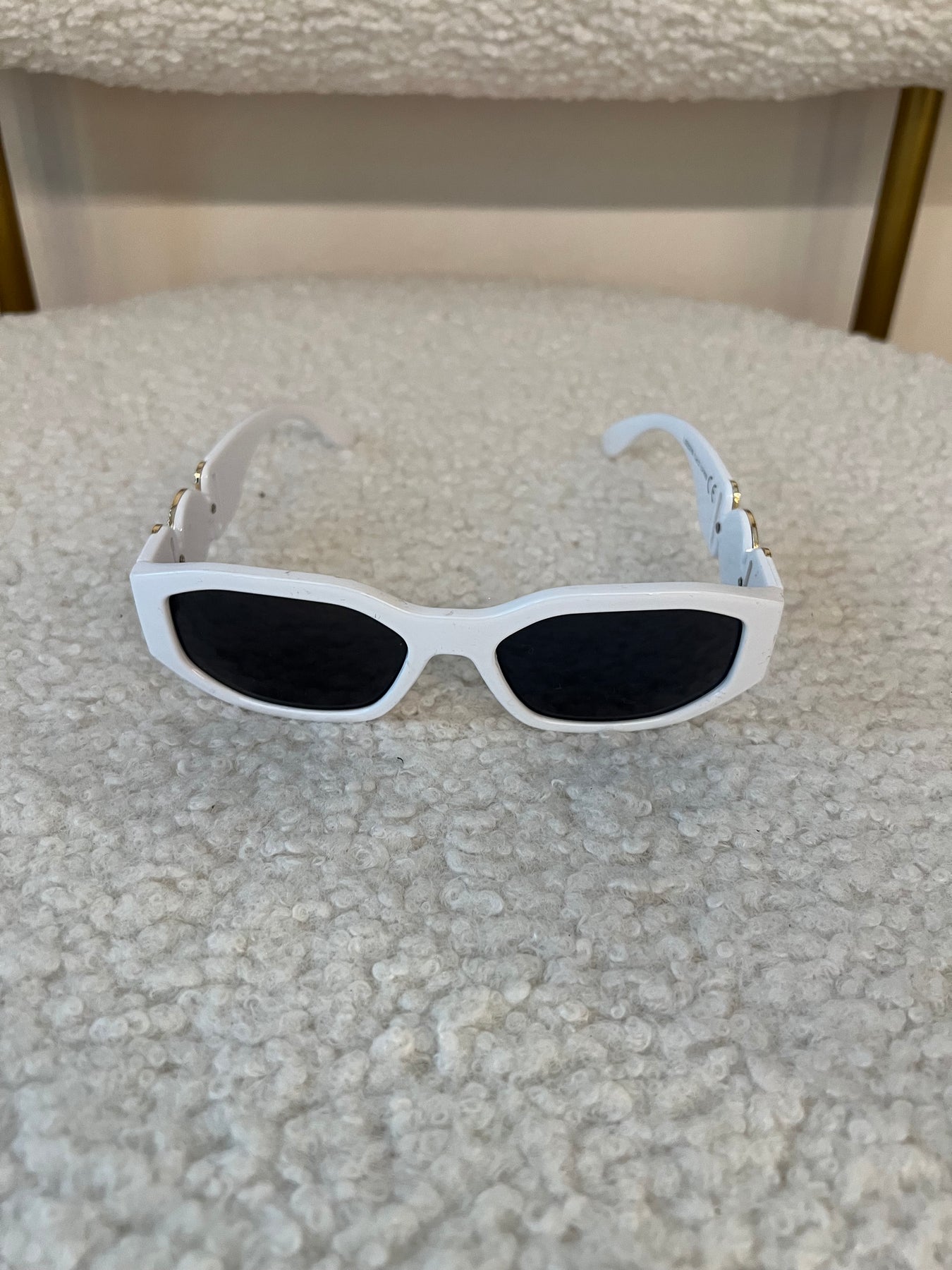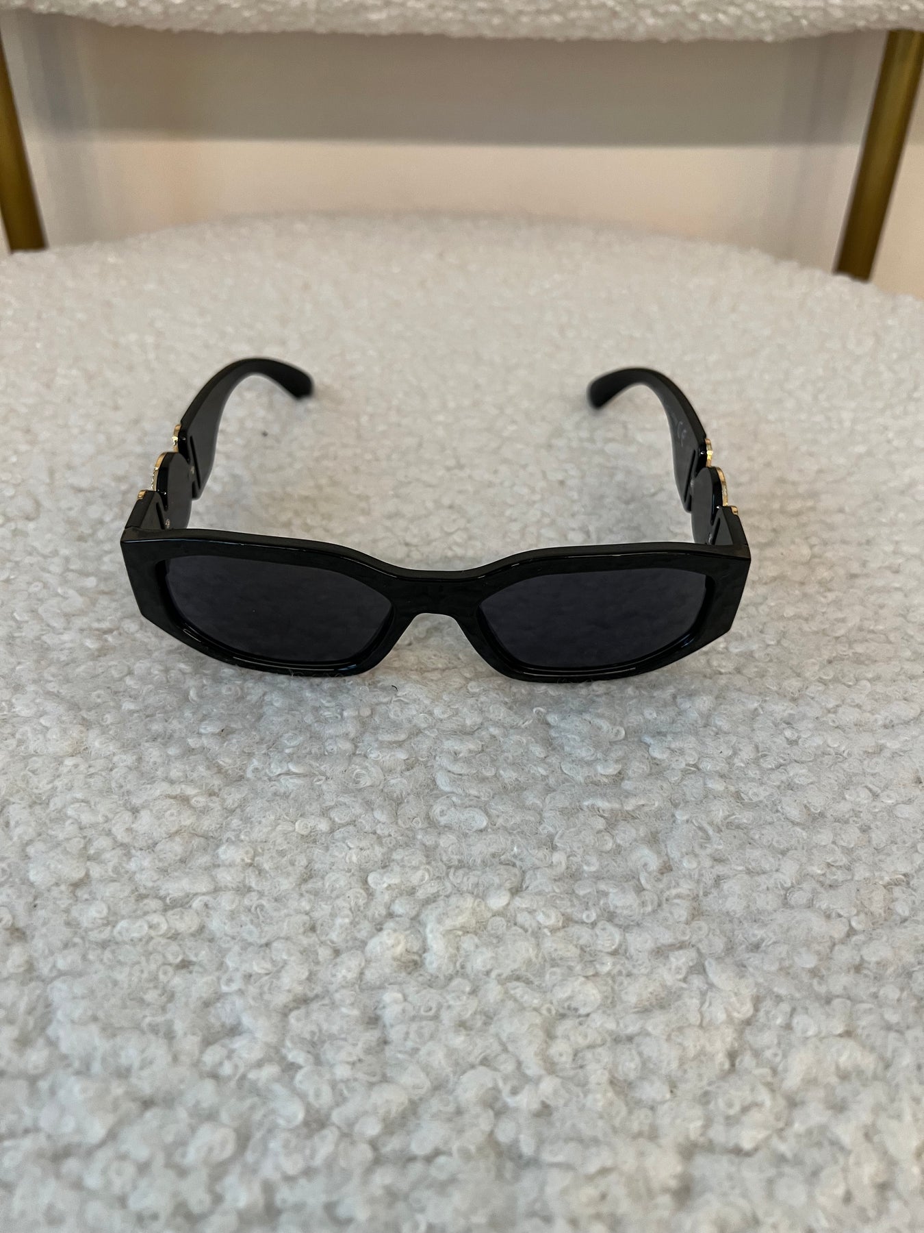 Occhiali da sole con lente rettangolare e montatura plastica con applicazioni sulle aste