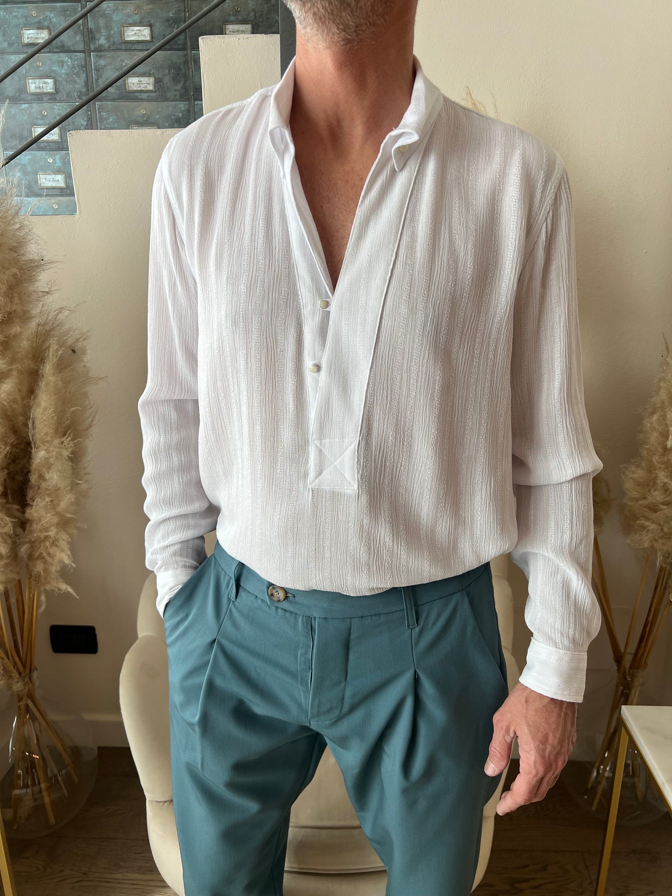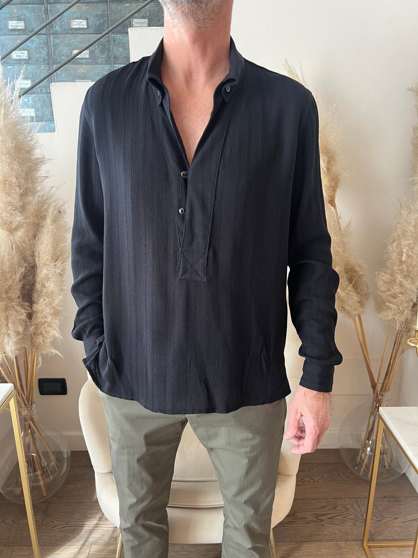Camicia in viscosa dalla vestibilità morbida con scollo a polo.
