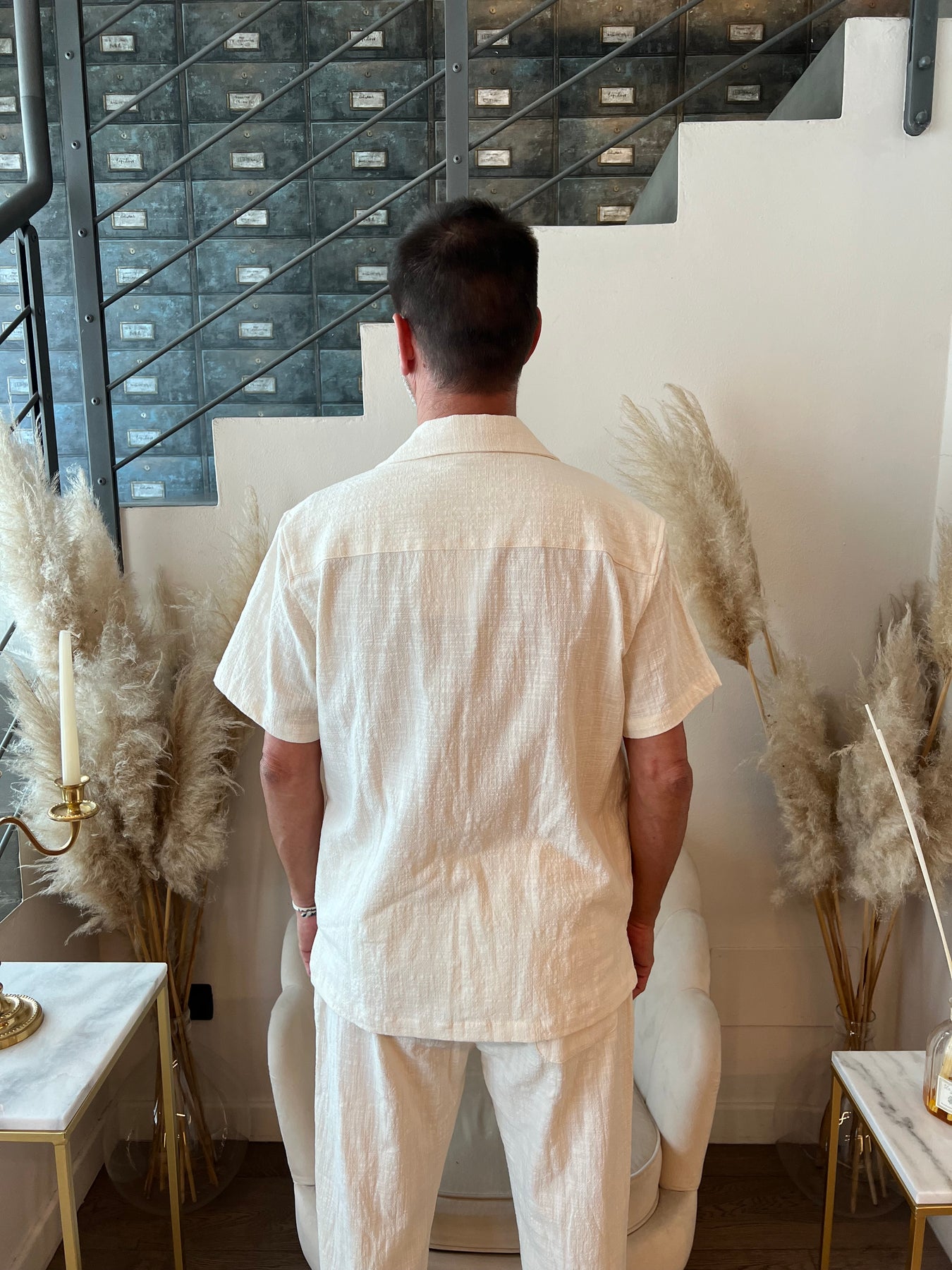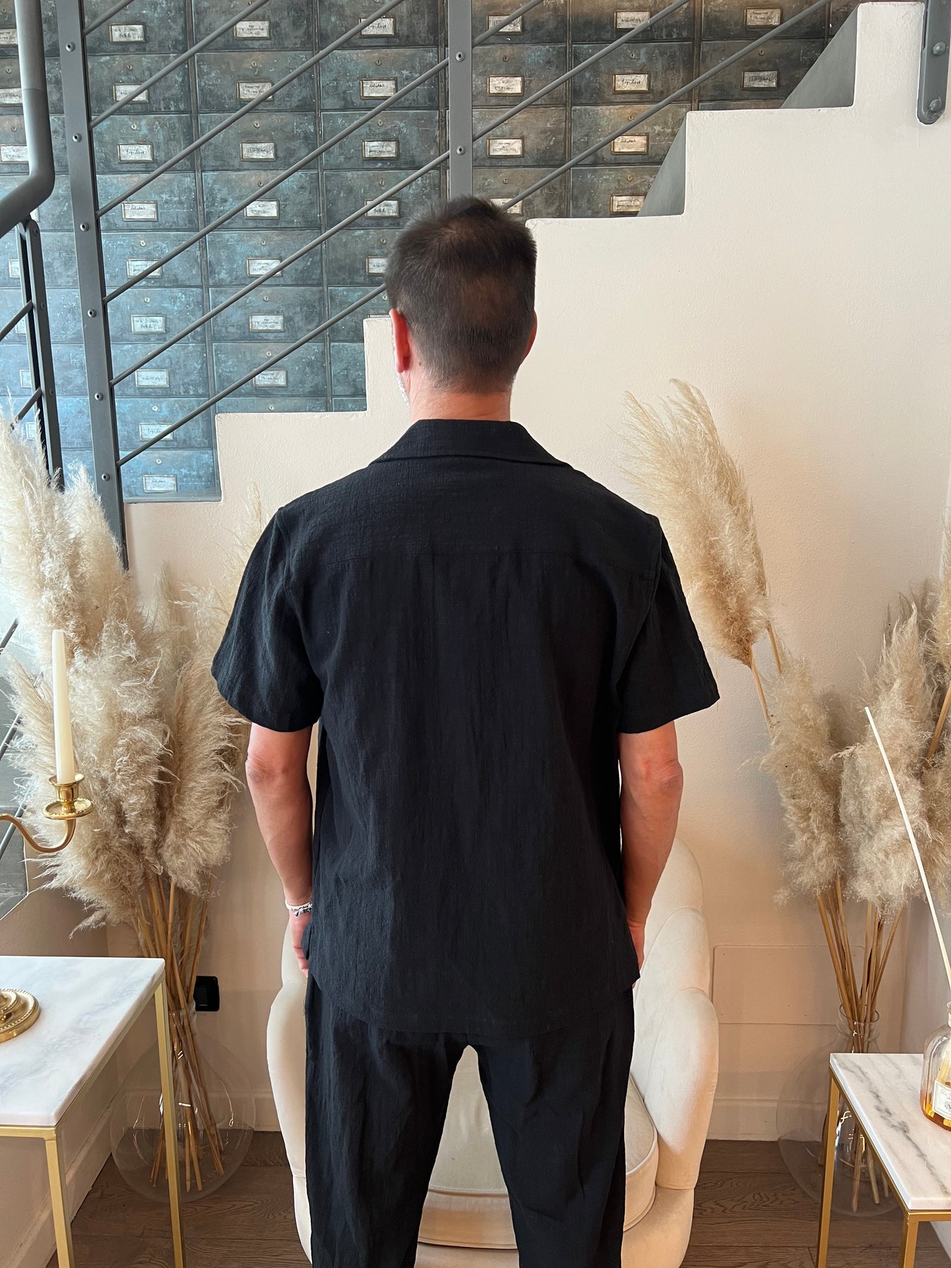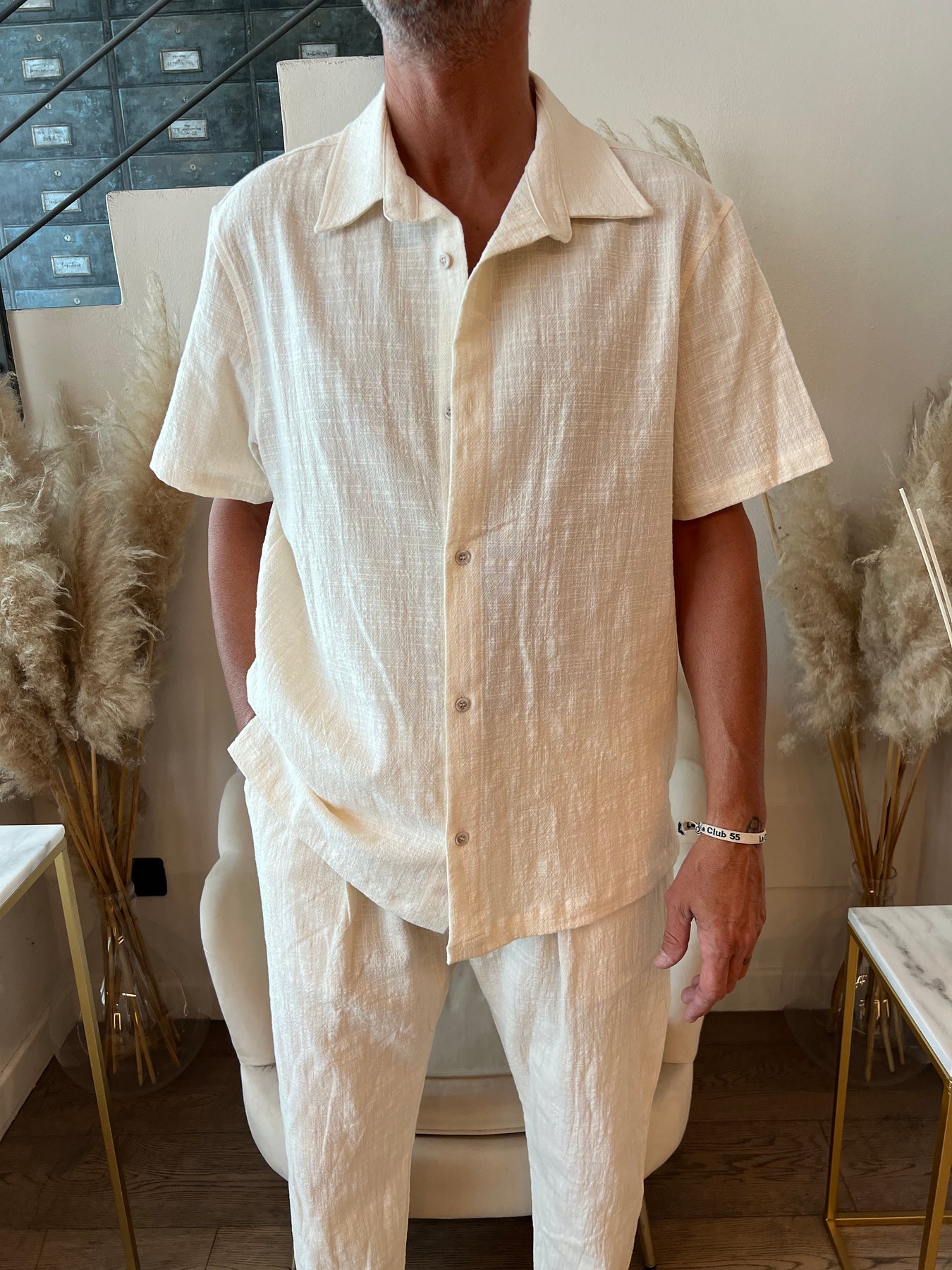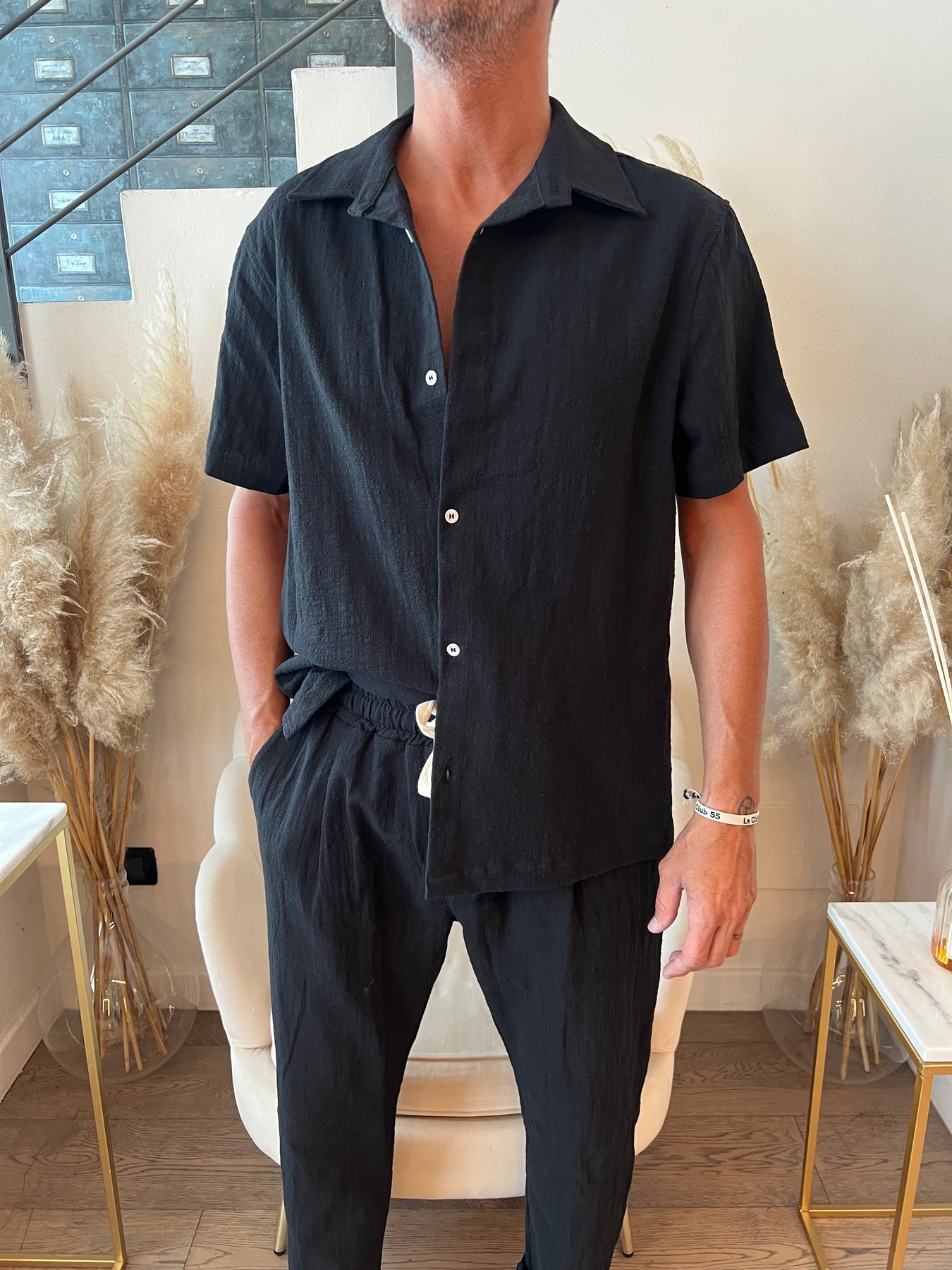 Camicia in tessuto leggero goffrato a maniche corte