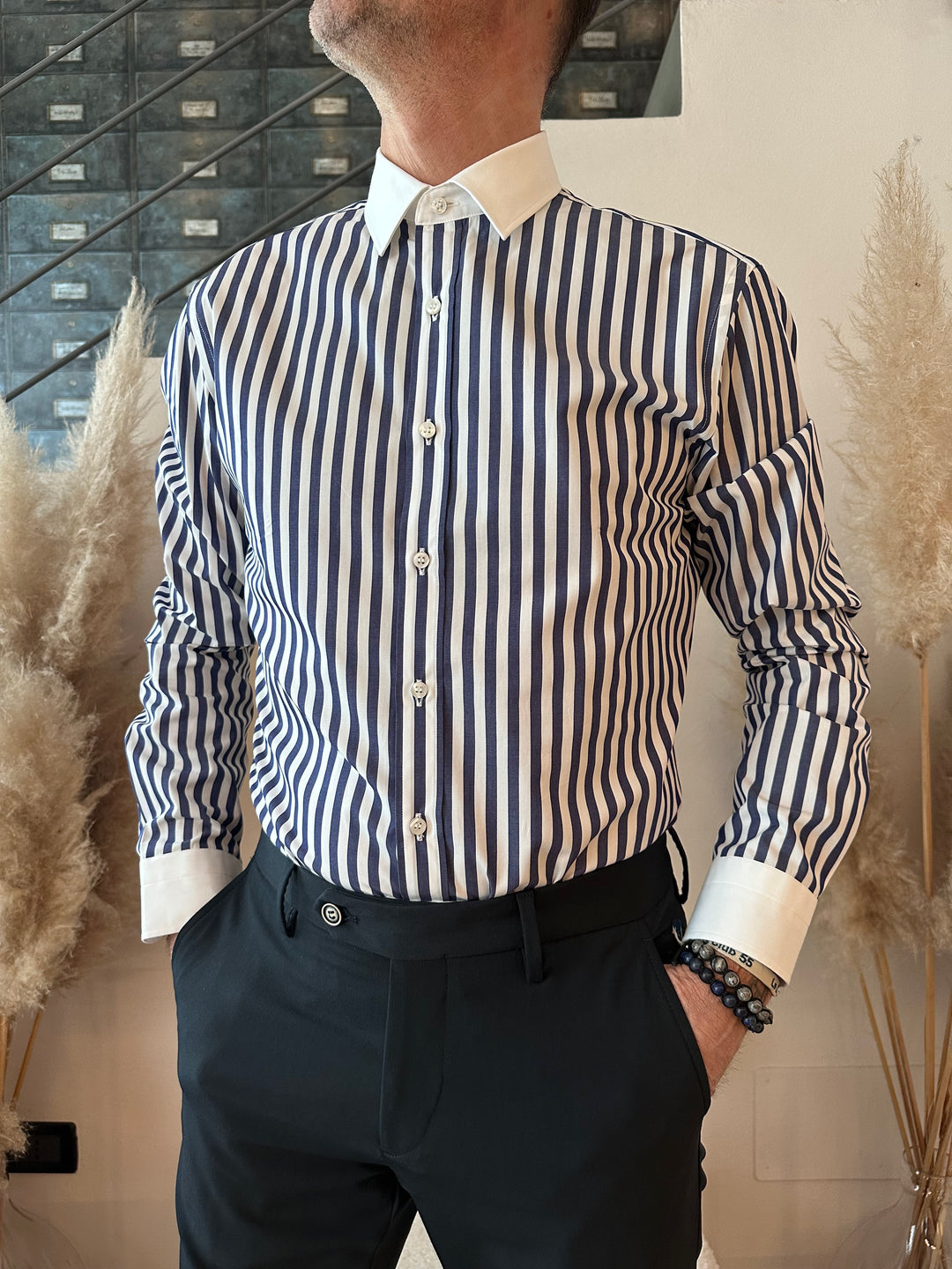 CAMICIA RIGHE COLLO E POLSI BIANCHI