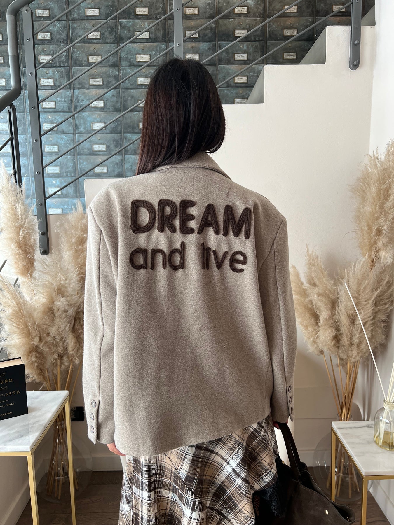 Cappotto corto foderato dalla vestibilità over con dettaglio ricamo nella schiena. Veste dalla 40 alla 46