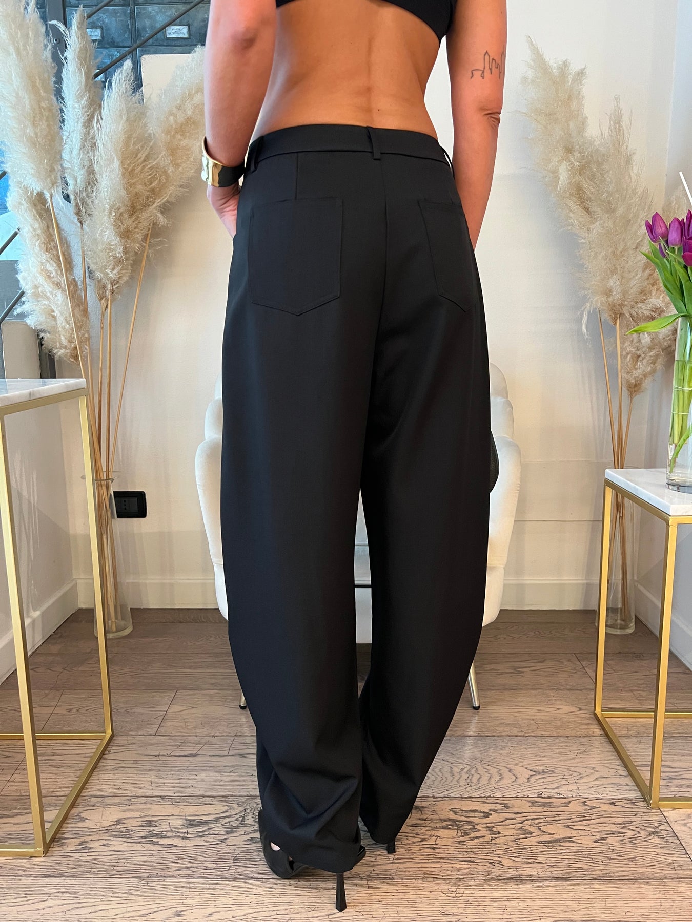 Pantaloni modello balloon a vita regalare con tasche a jeans.