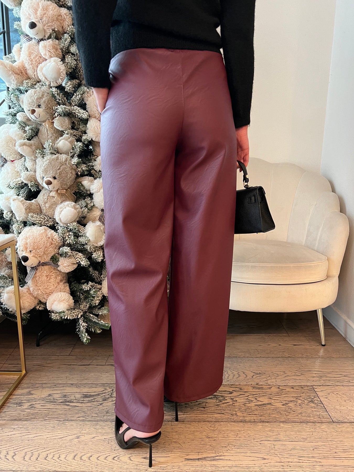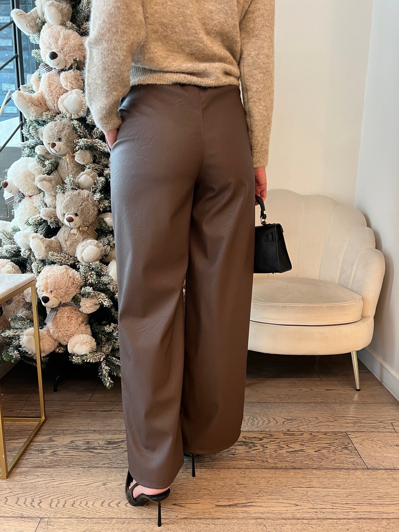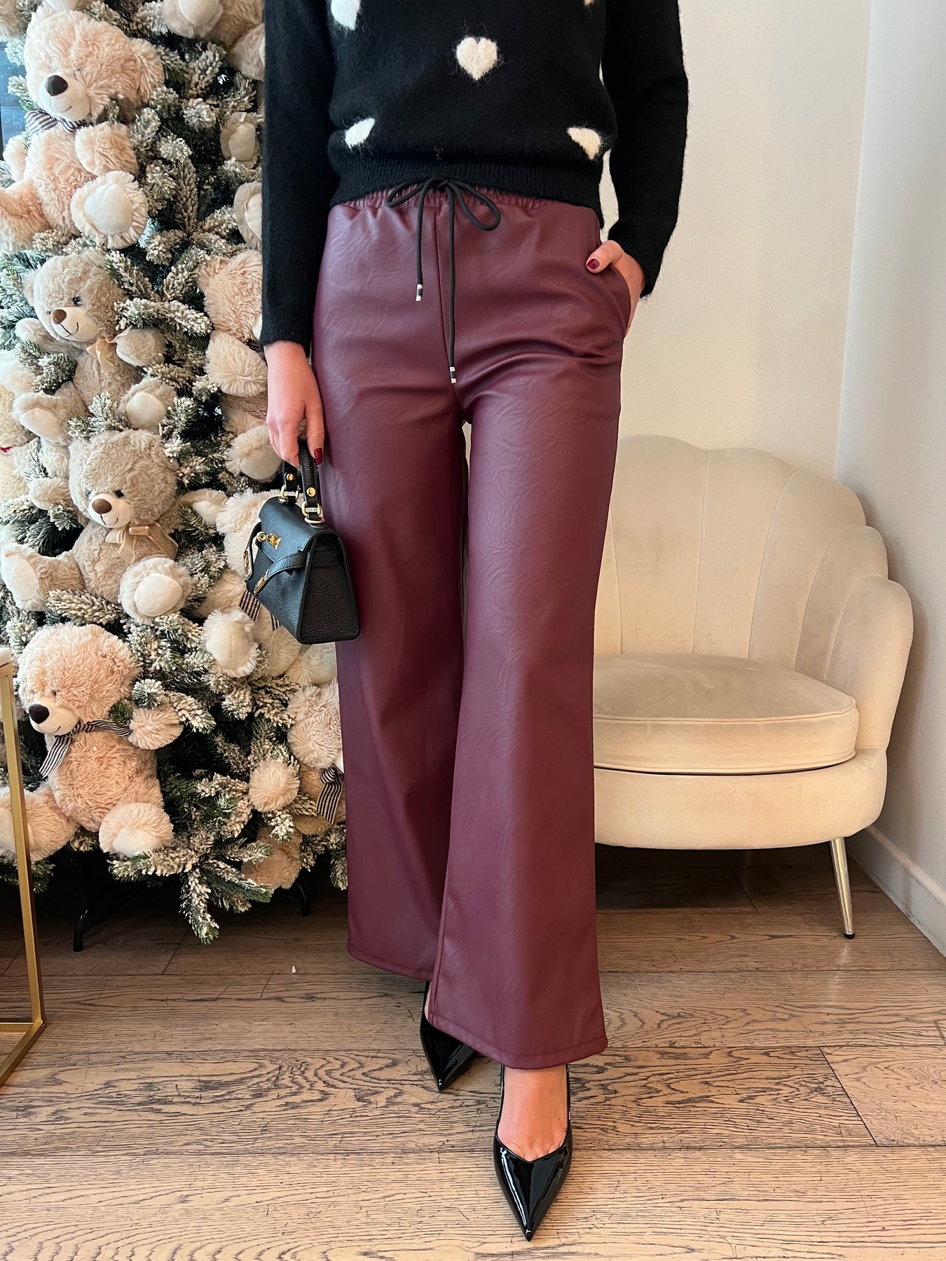 Pantaloni in ecopelle a gamba dritta con elastico in vita. Vestono dalla 40 alla 44