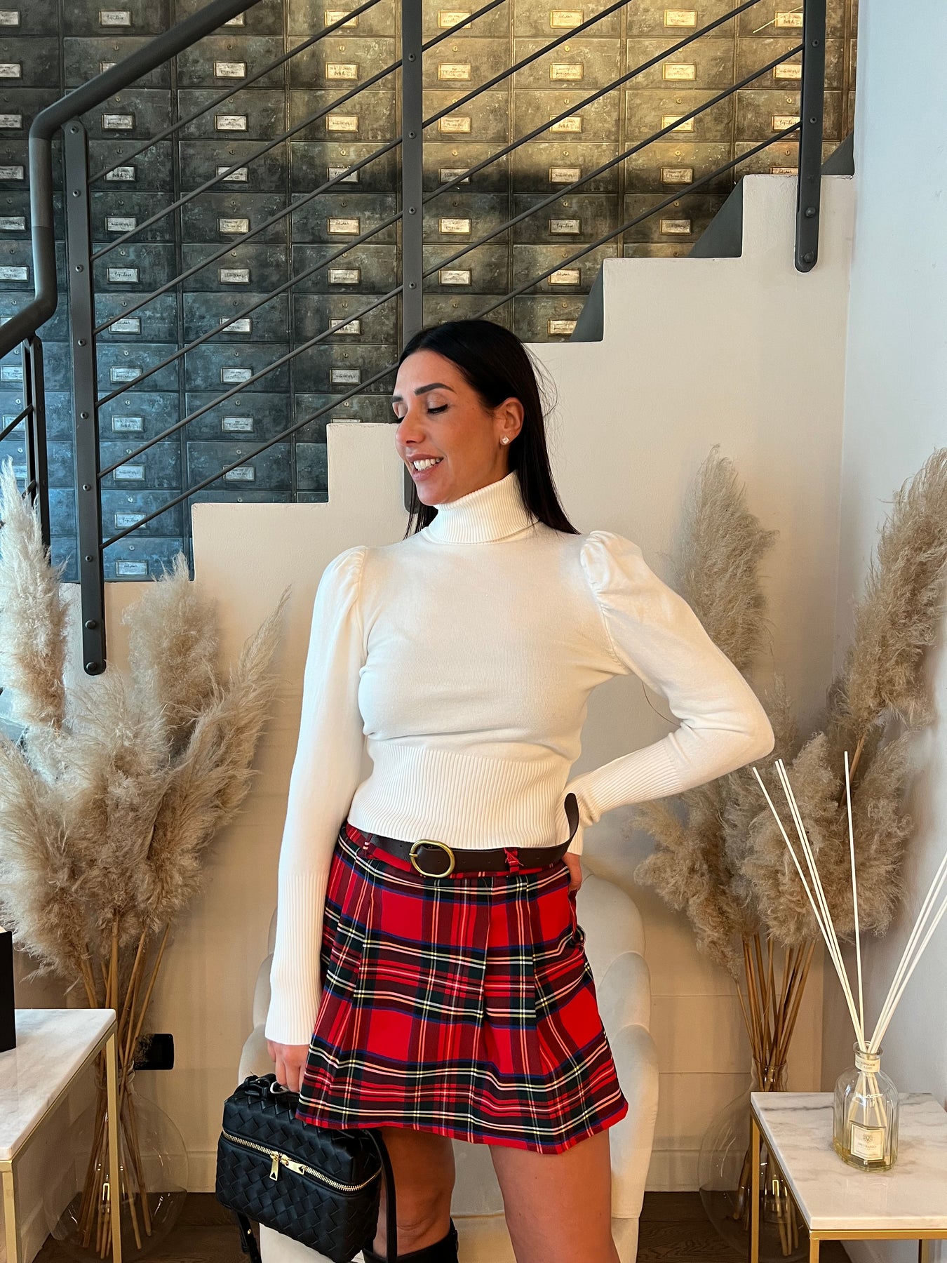 Dolcevita in viscosa elasticizzata con maniche a sbuffo. Veste dalla 40 alla 44