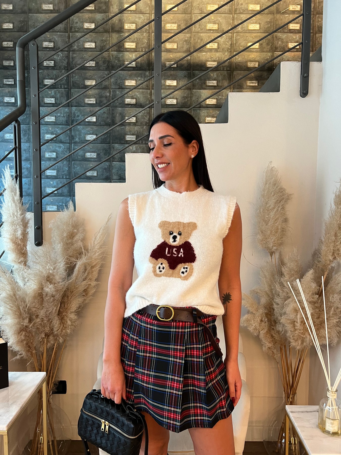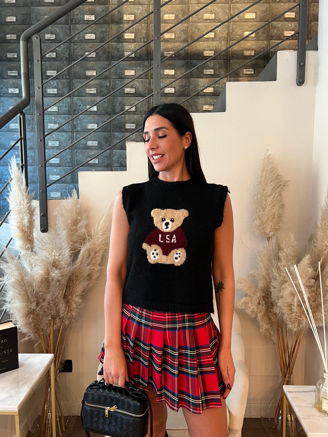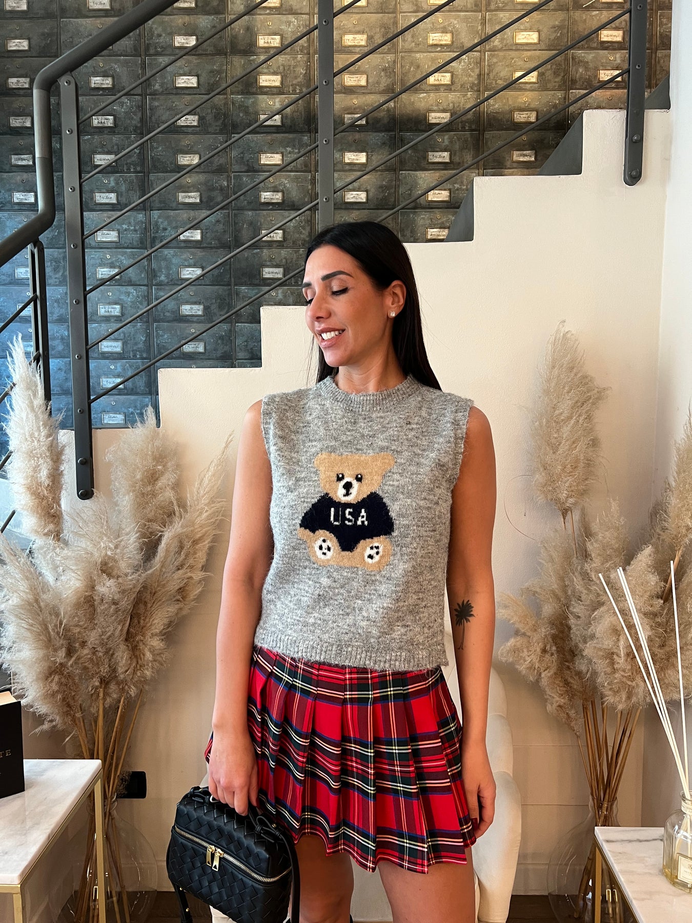 Gilet misto lana con dettaglio orsetto. Veste dalla 40 alla 44