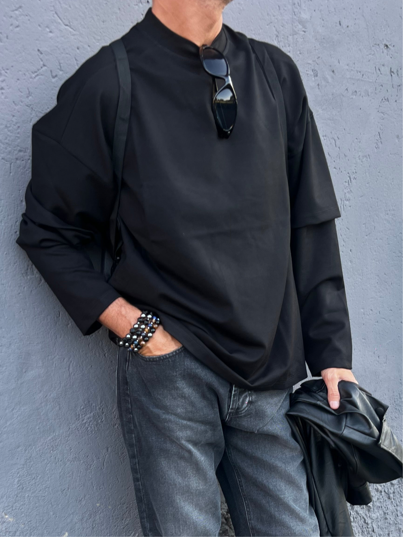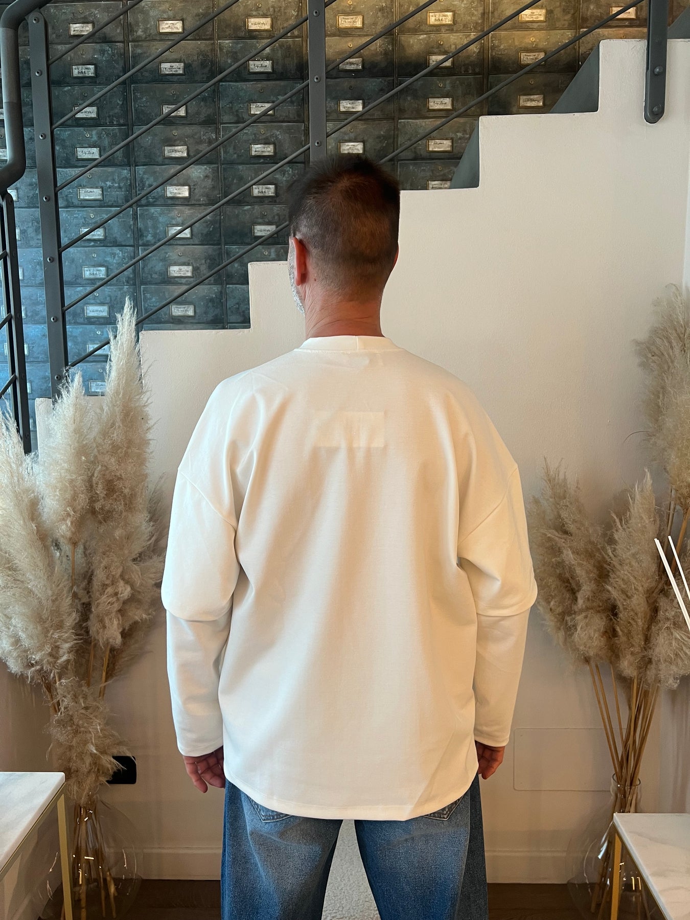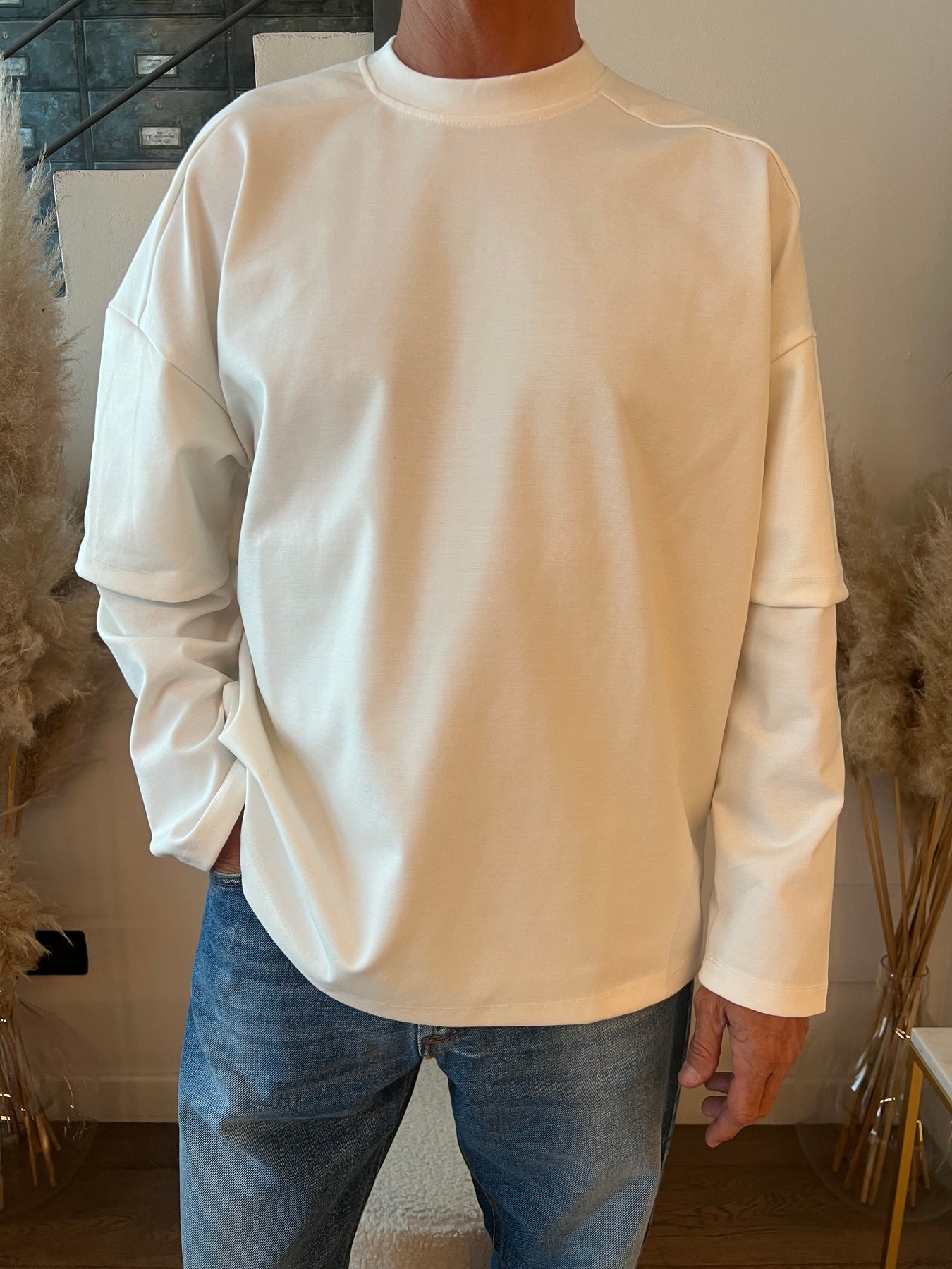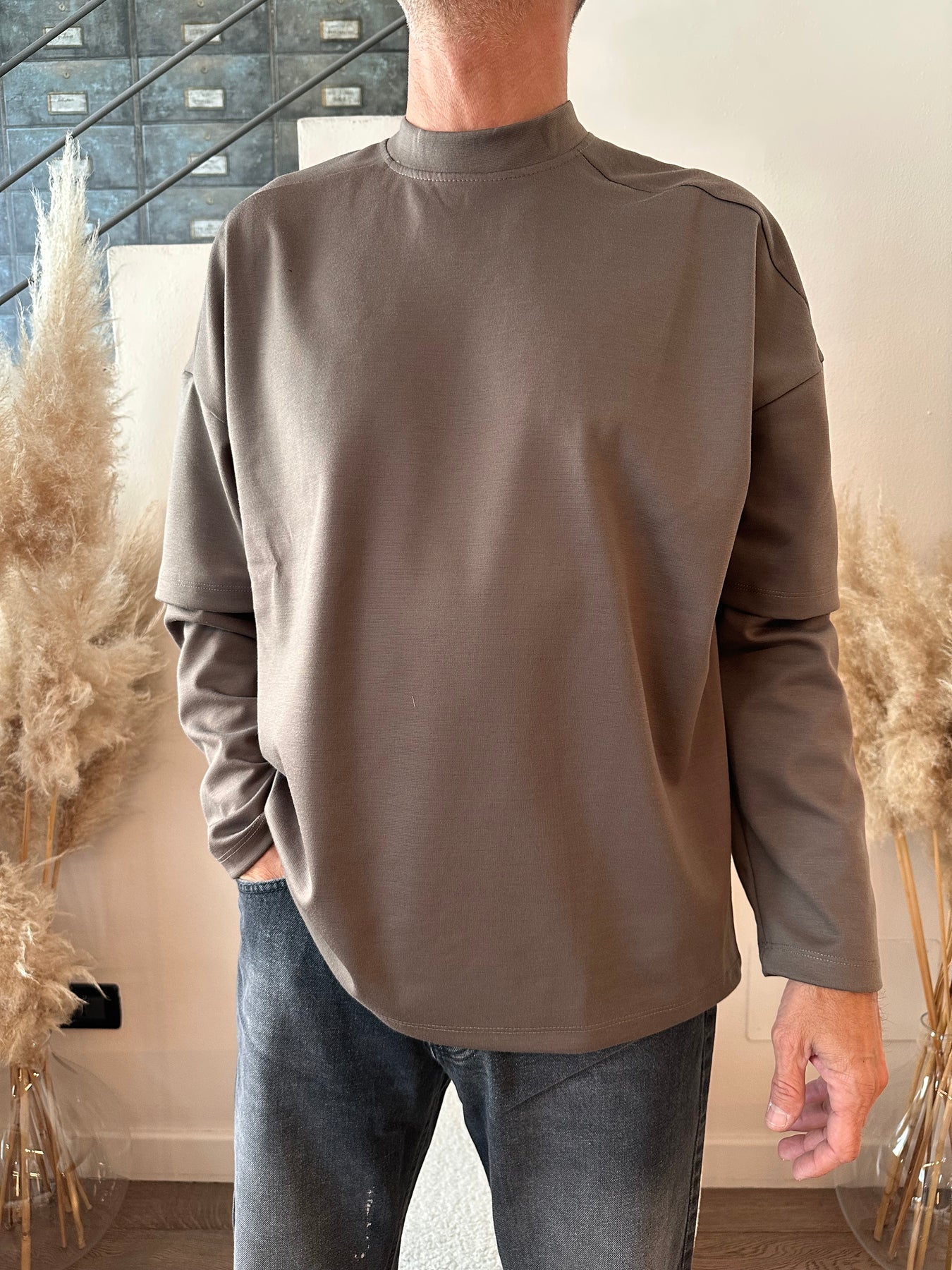 Felpa in viscosa elasticizzata girocollo, vestibilità over con orlo dritto e dettaglio doppia manica
