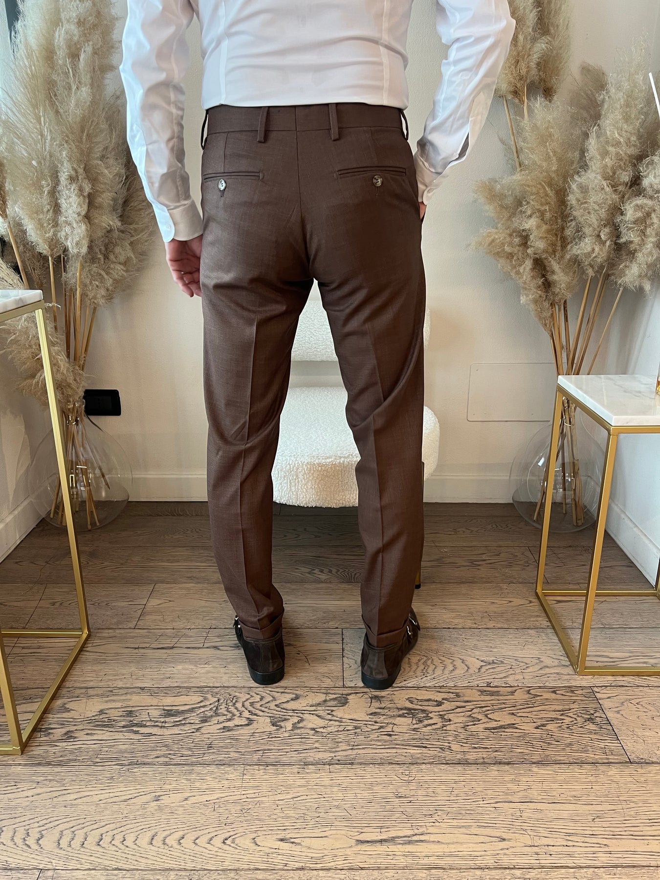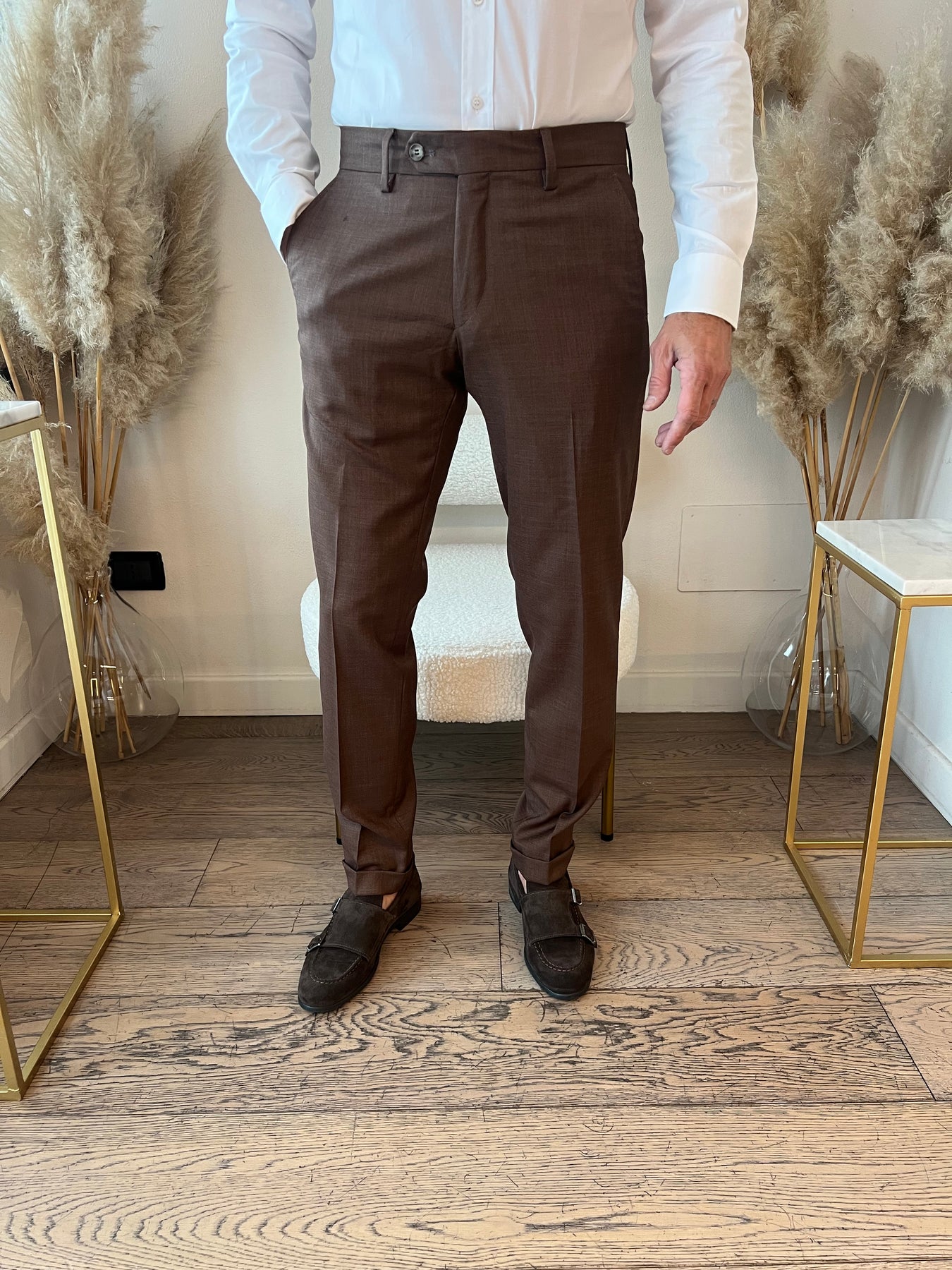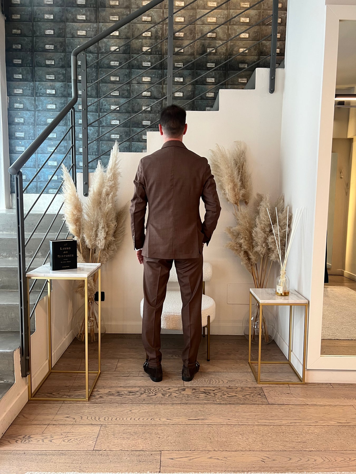 Completo composto da giacca monopetto foderata con doppio spacco e pantaloni slim a vita regolare.