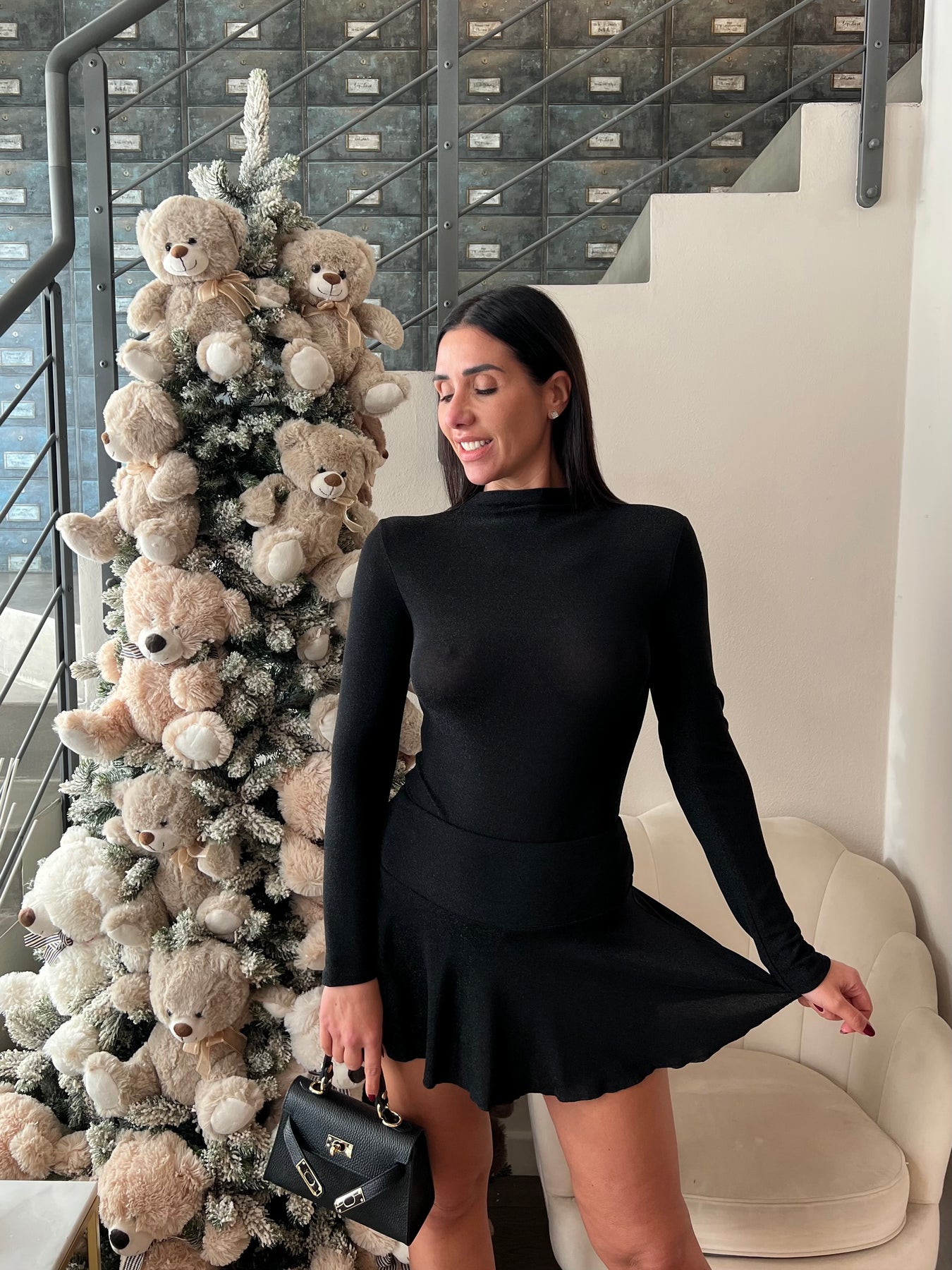 Body in tessuto glitterato dalla modellatura slim con collo accennato e maniche lunghe. Veste dalla 40 alla 44