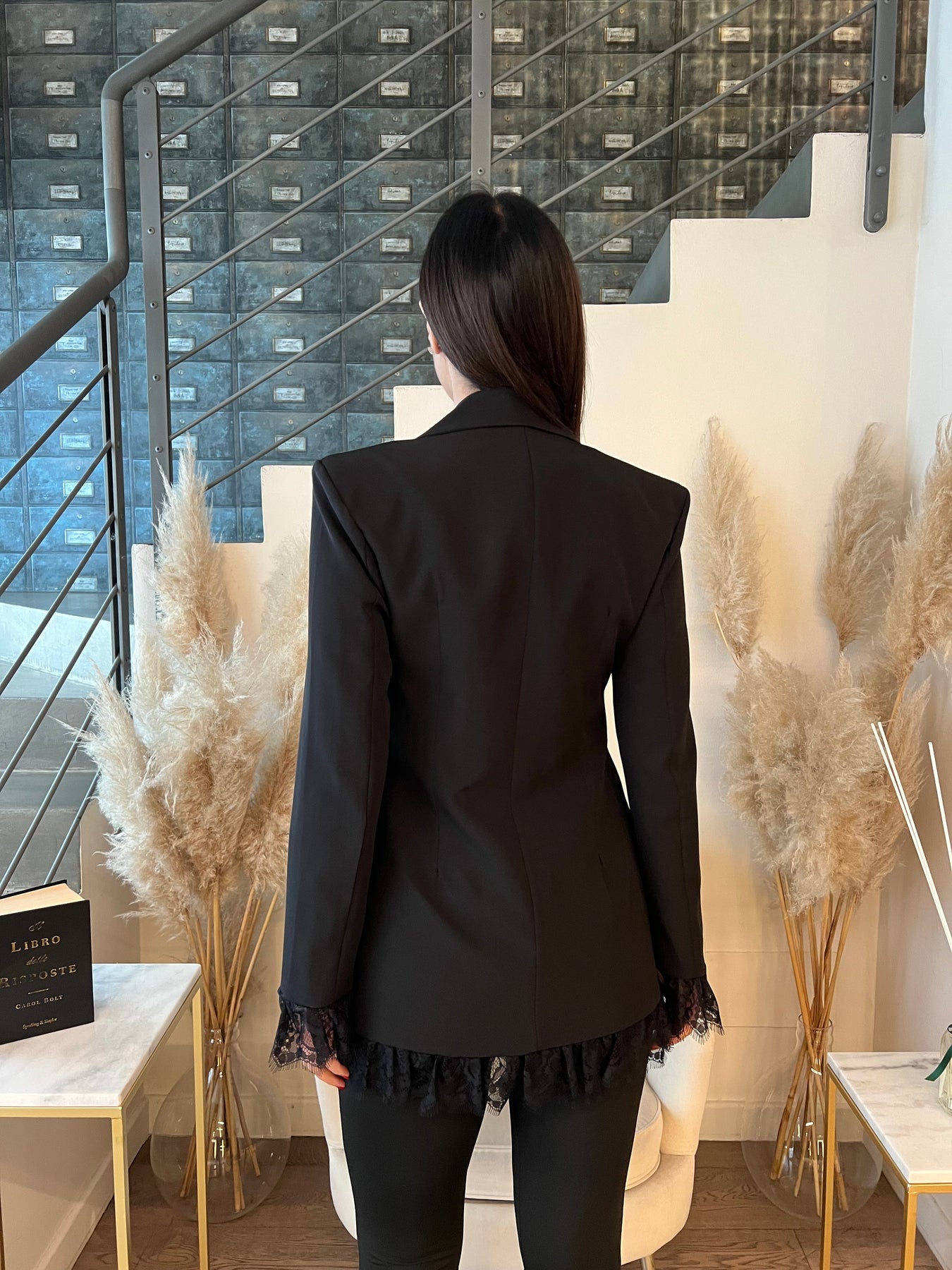 Giacca dalla modelli slim con dettaglio bordo pizzo. Veste dalla 40 alla 44