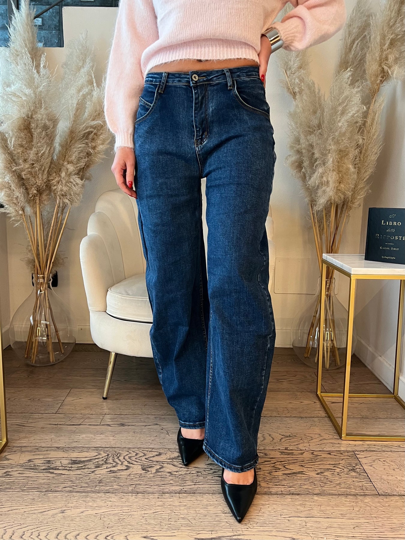 Jeans elasticizzati a vita bassa con gamba baloon.