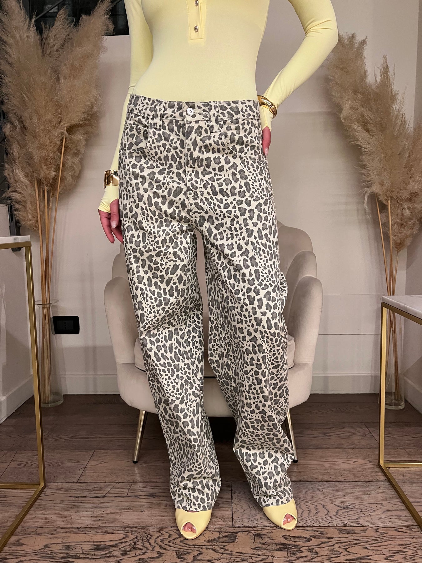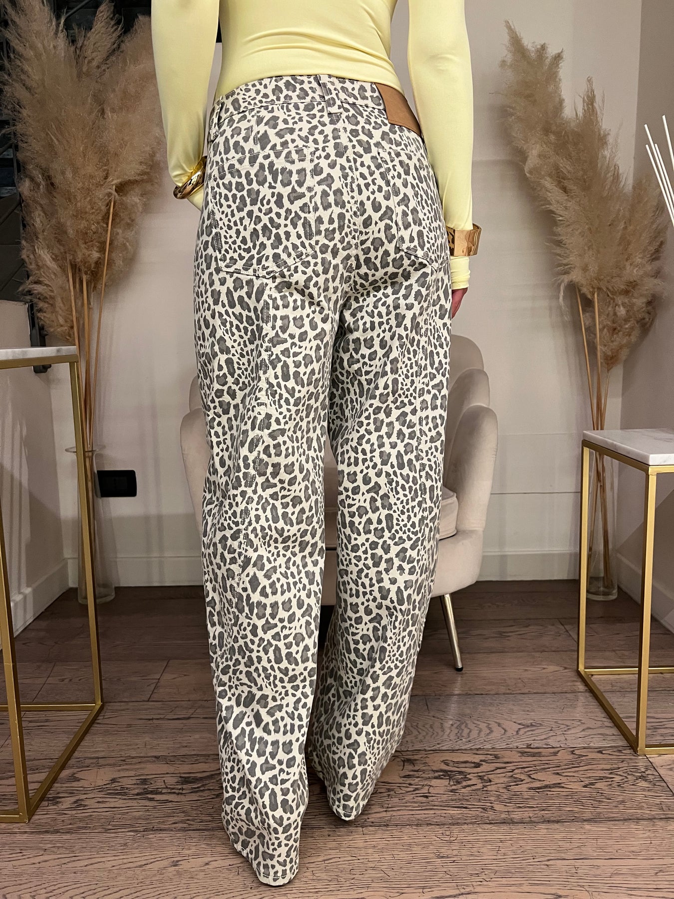 Jeans modello balloon in fantasia maculata a vita bassa con gamba morbida
