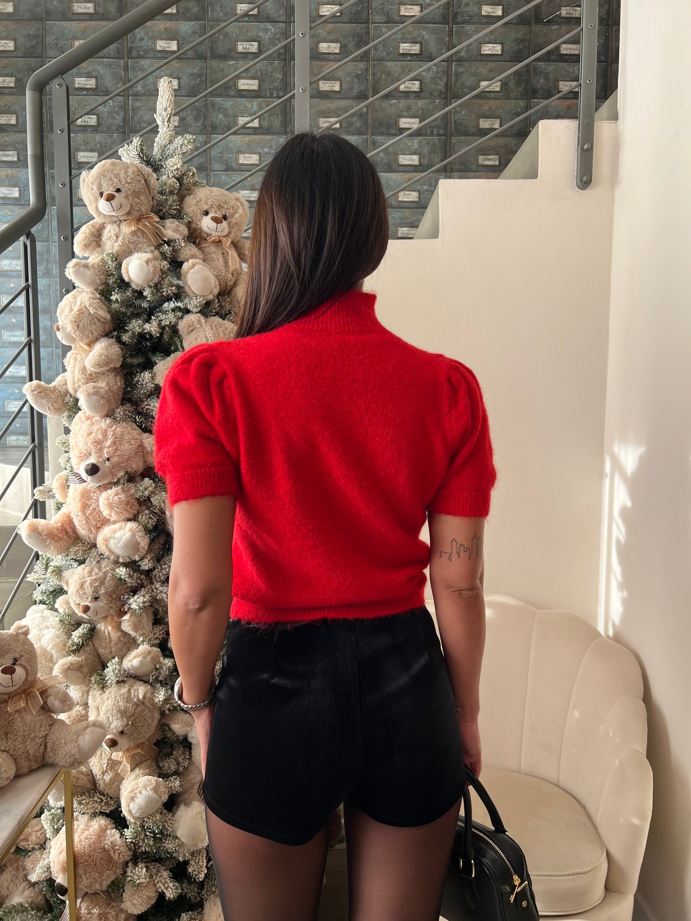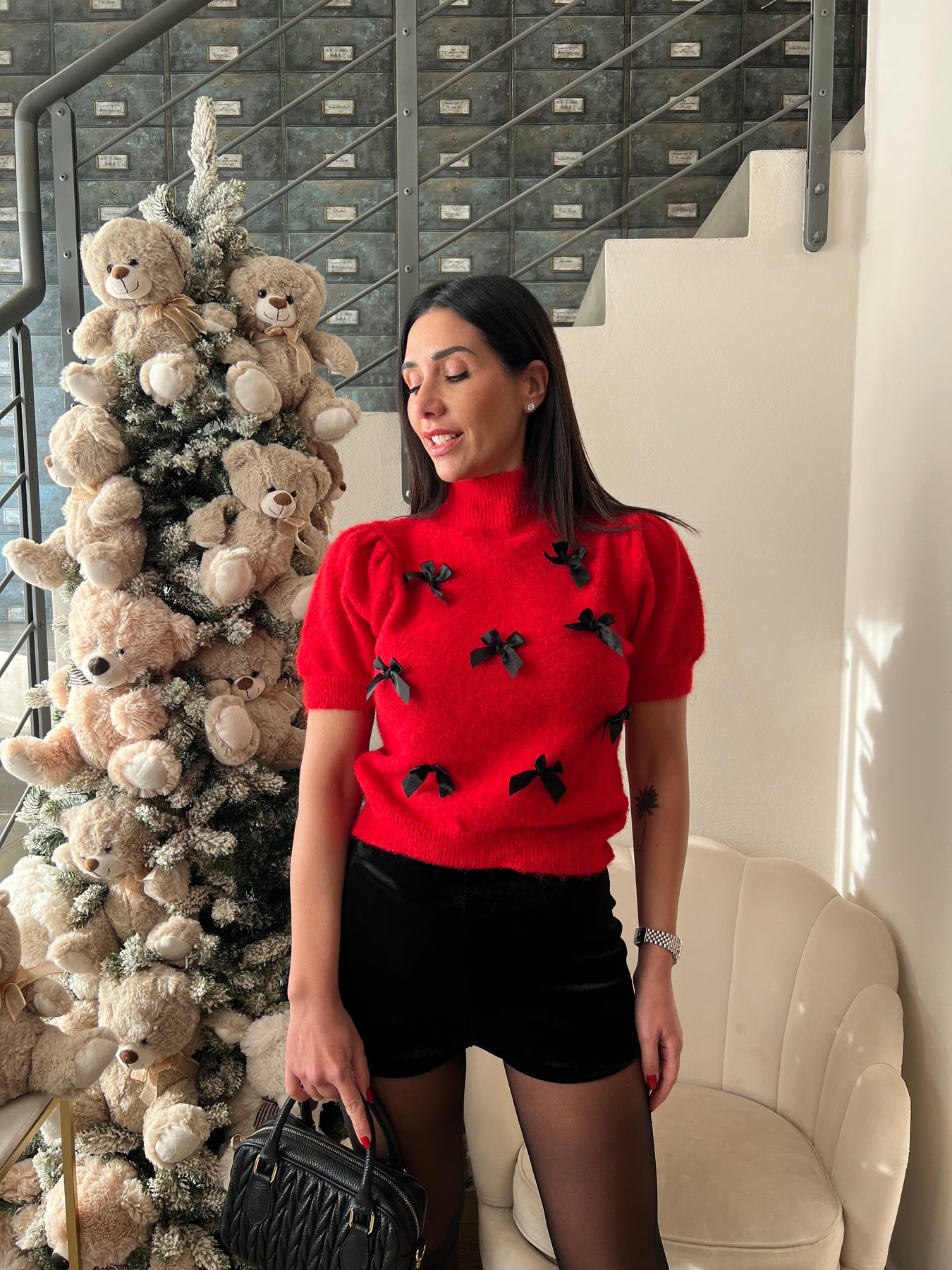 Maglione misto lana a maniche corte con fiocchetti. Veste dalla 40 alla 44
