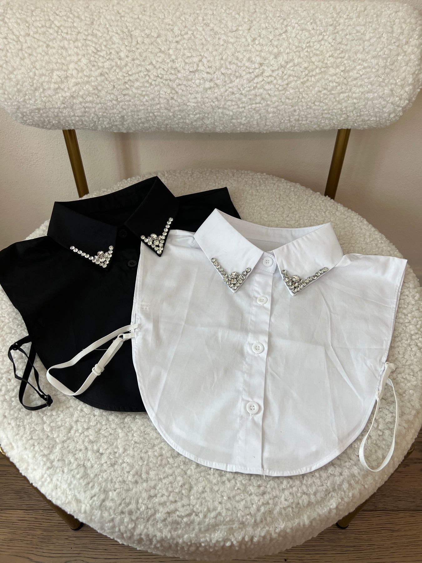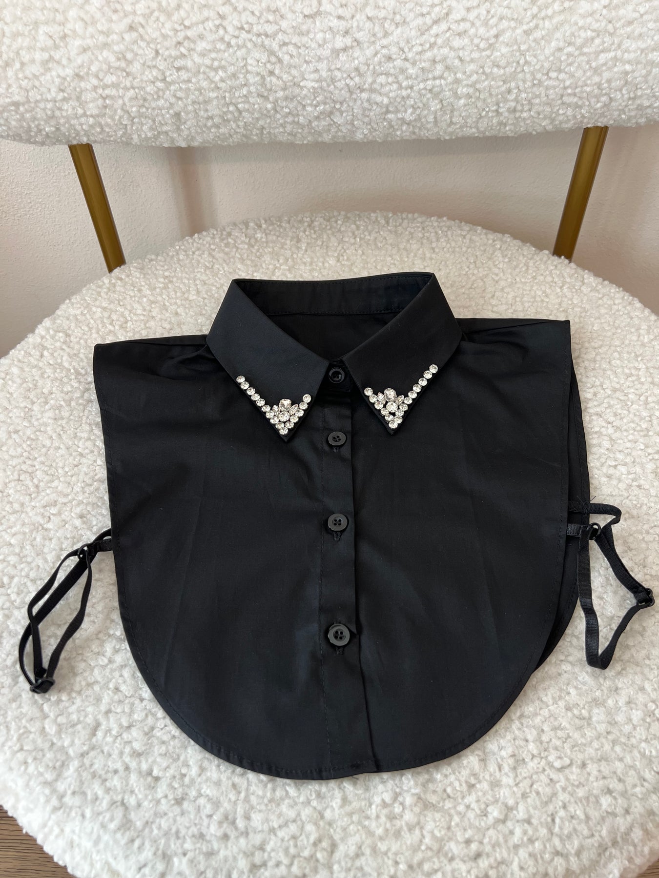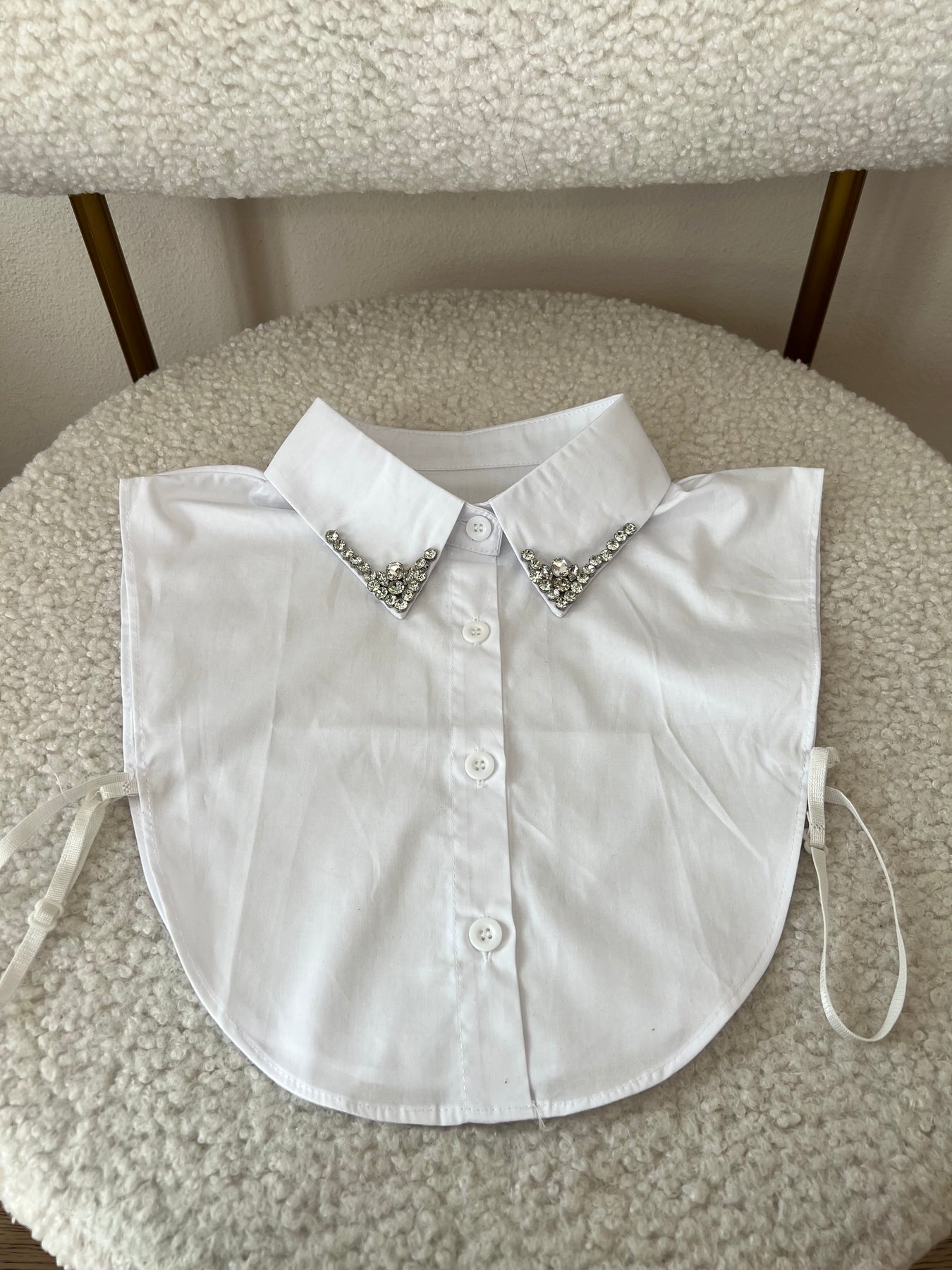 Camicia corta modello pettorina con strass al collo.