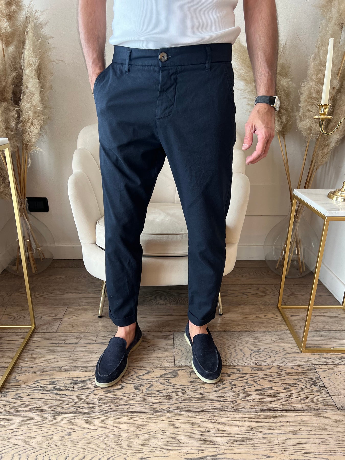 Pantaloni misto Lino modello chino con gamba slim.