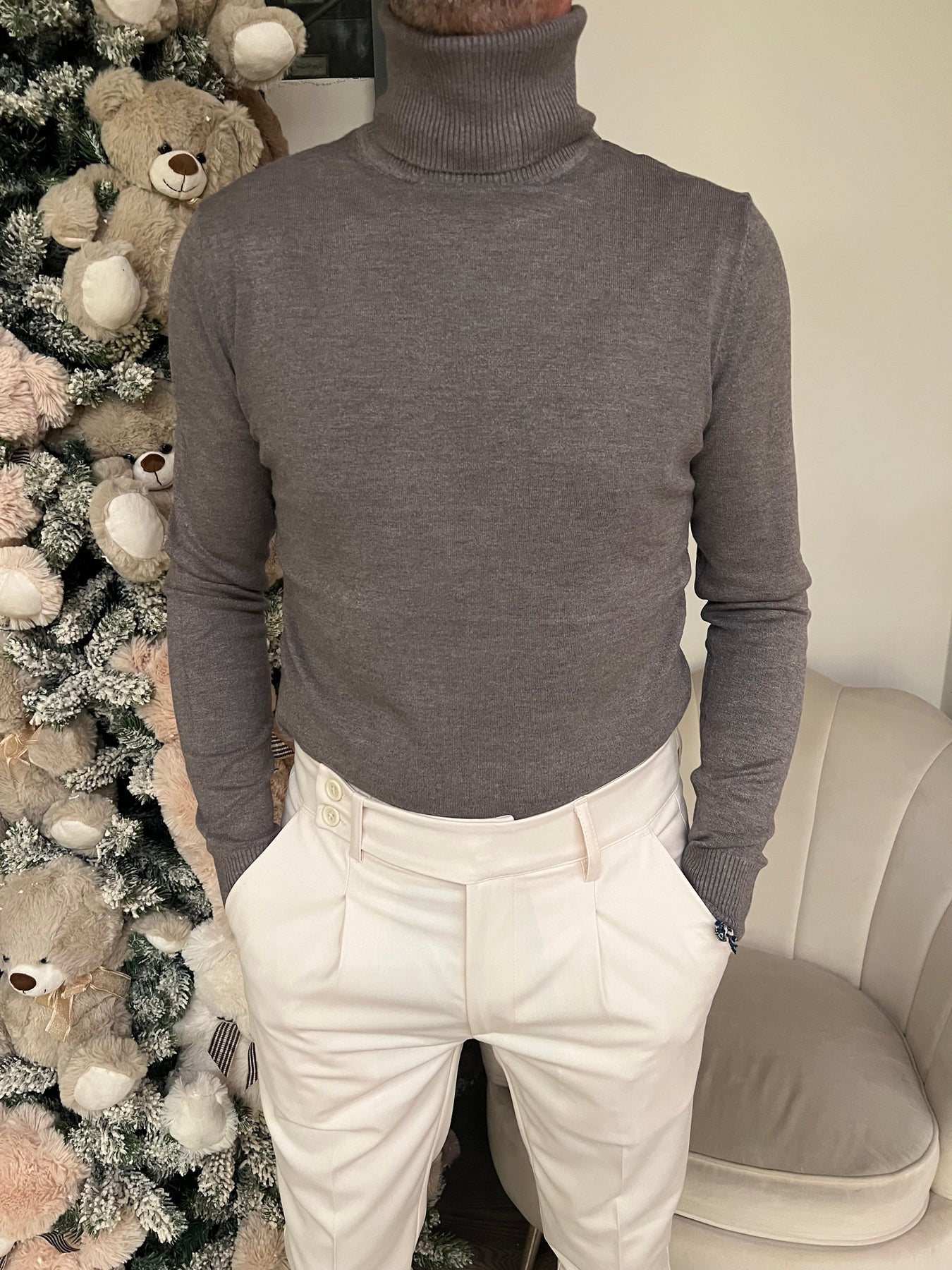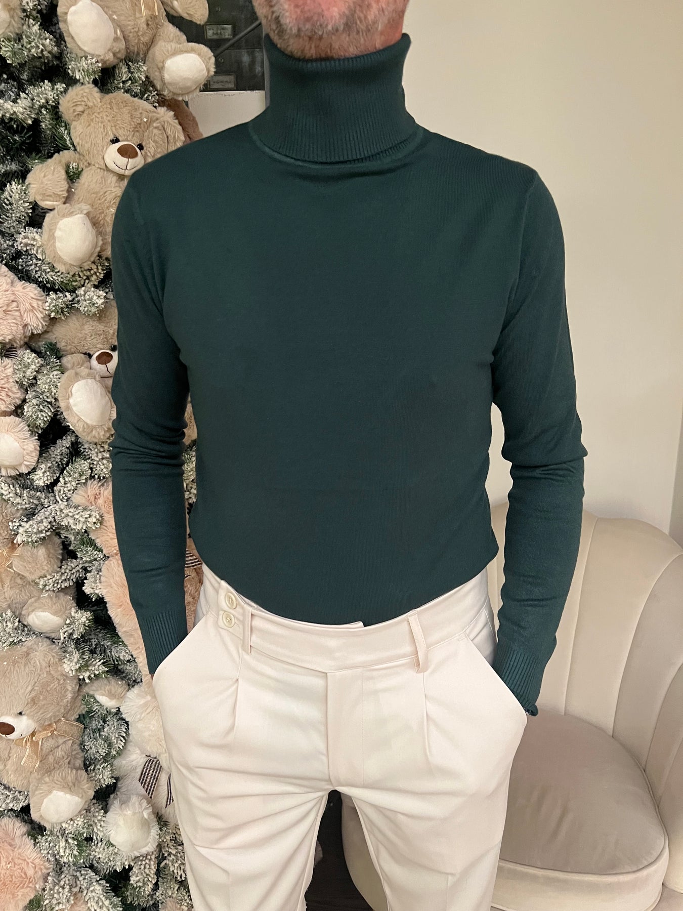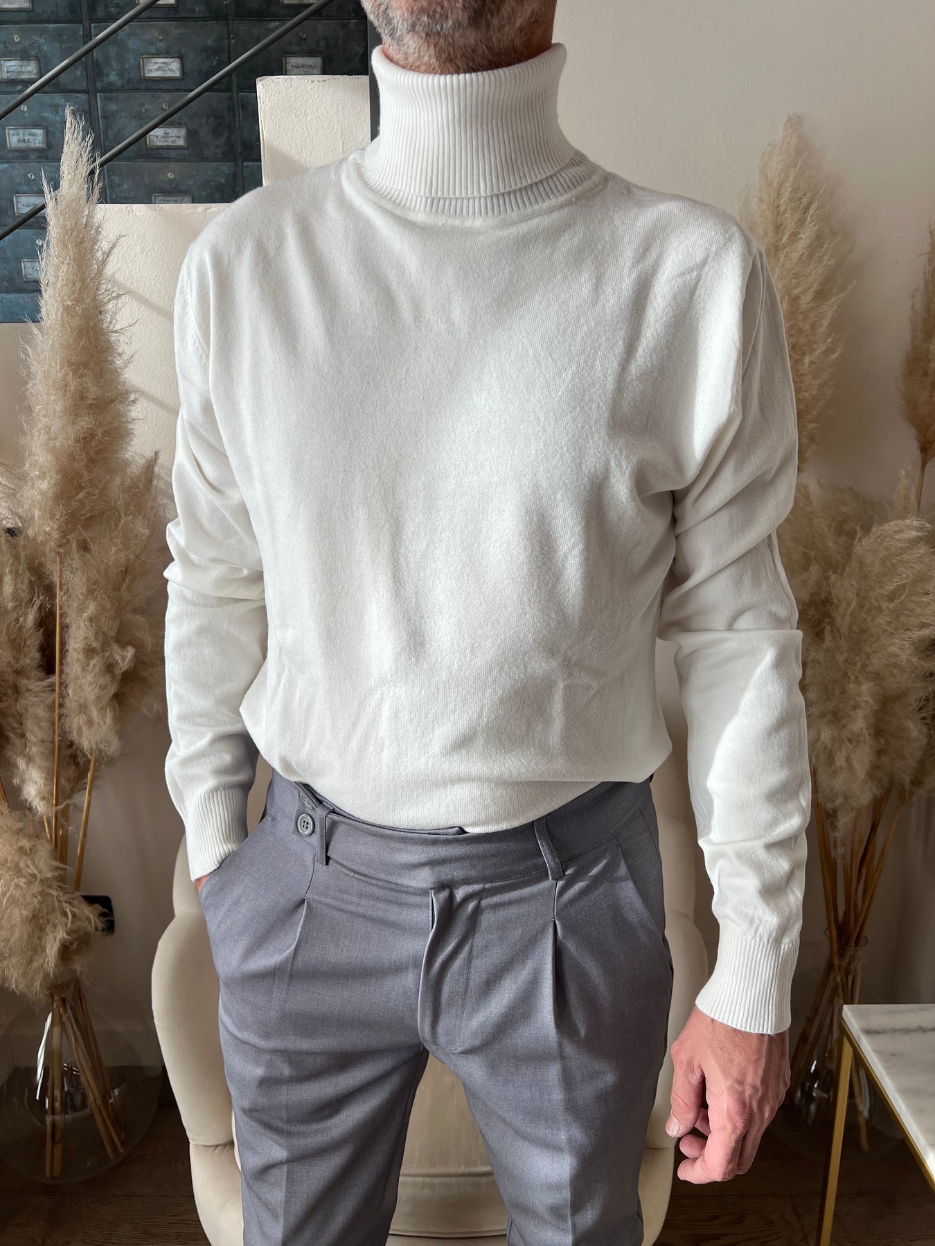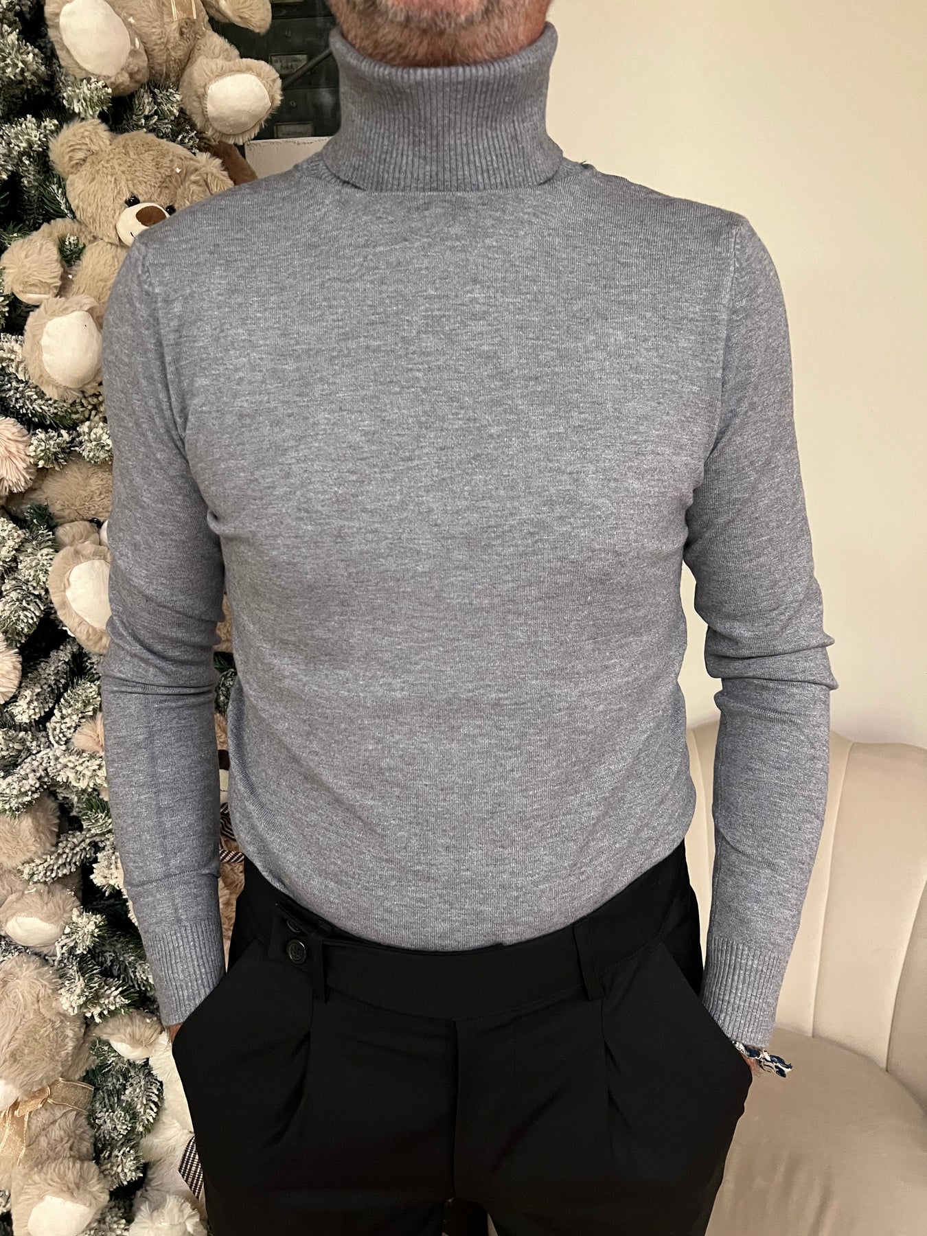Dolcevita in viscosa elasticizzata dalla modellatura slim.