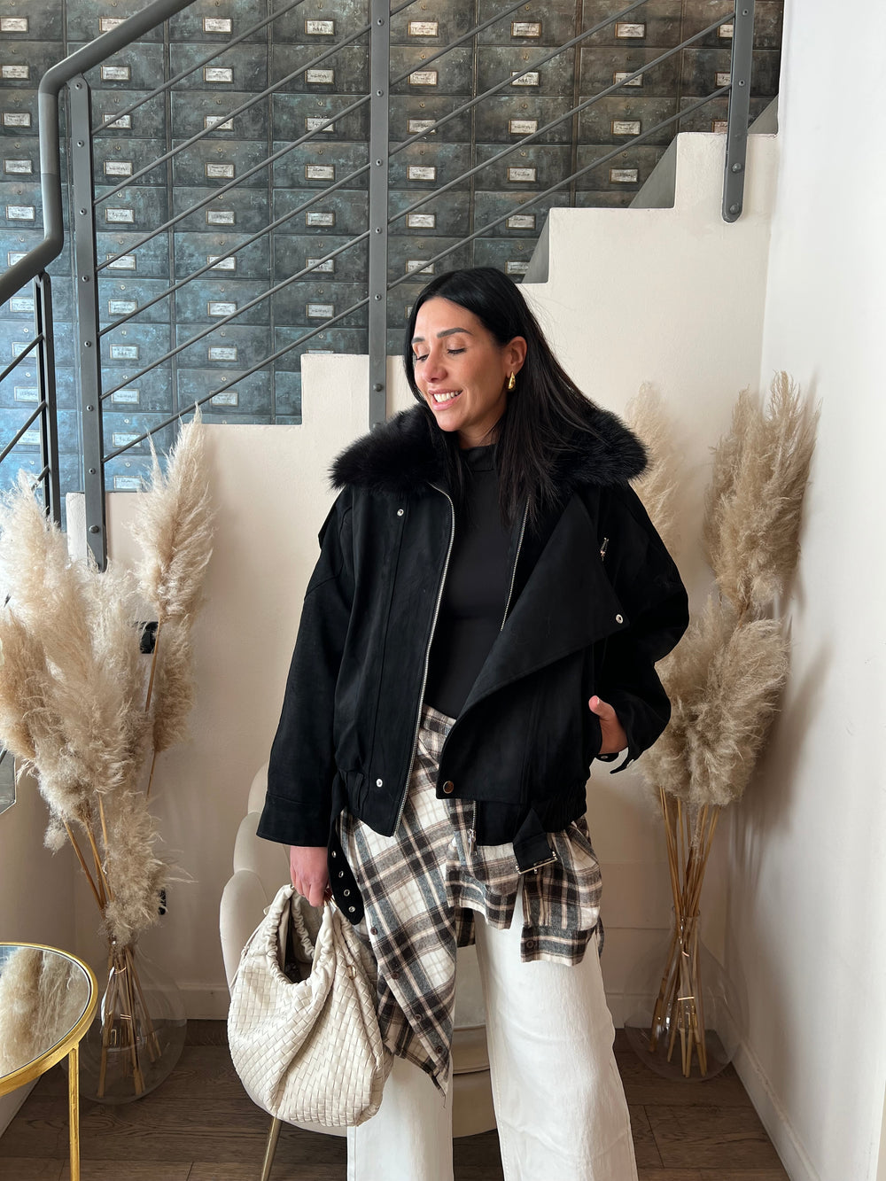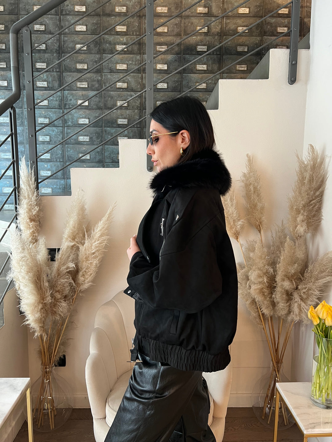 BOMBER SUEDE COLLO ECOFUR