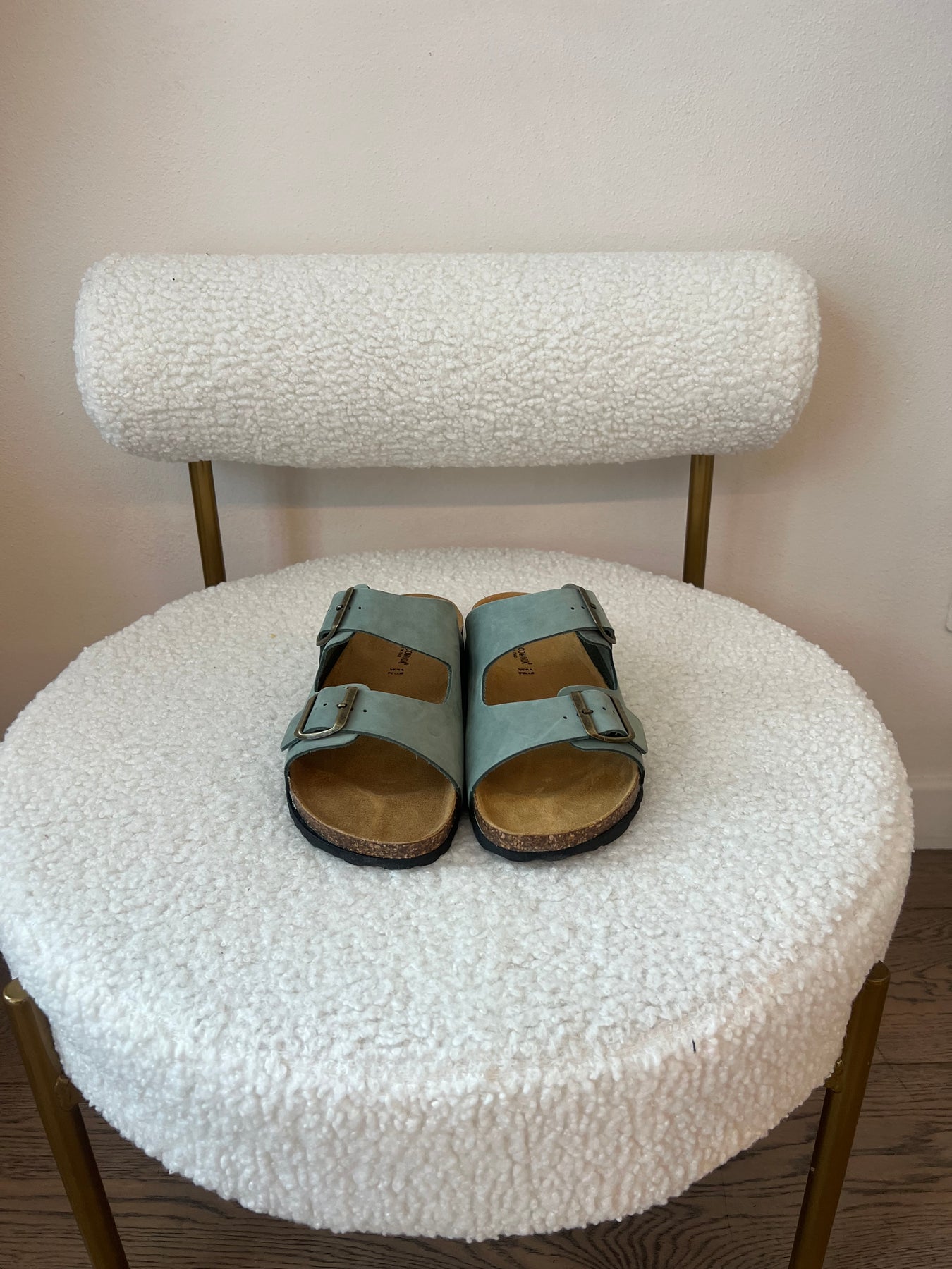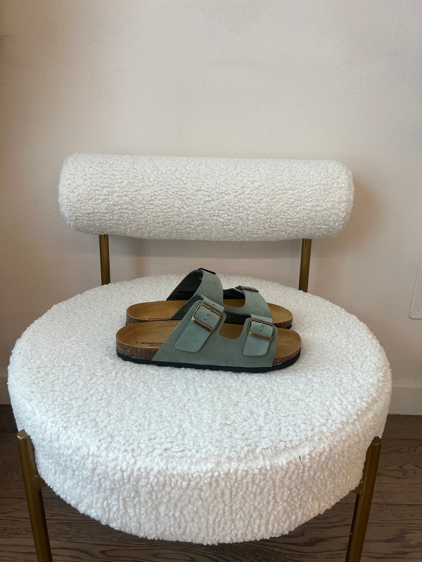 Calzature modello sandalo con fondo in gomma e doppia fibbia. Calzata regolare, consigliamo il numero portato abitualmente.