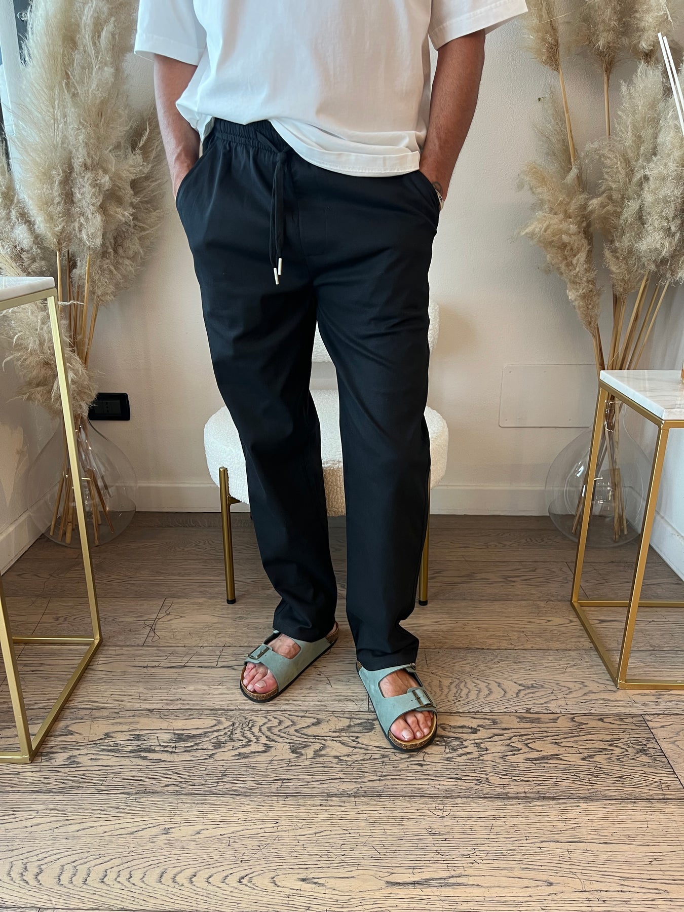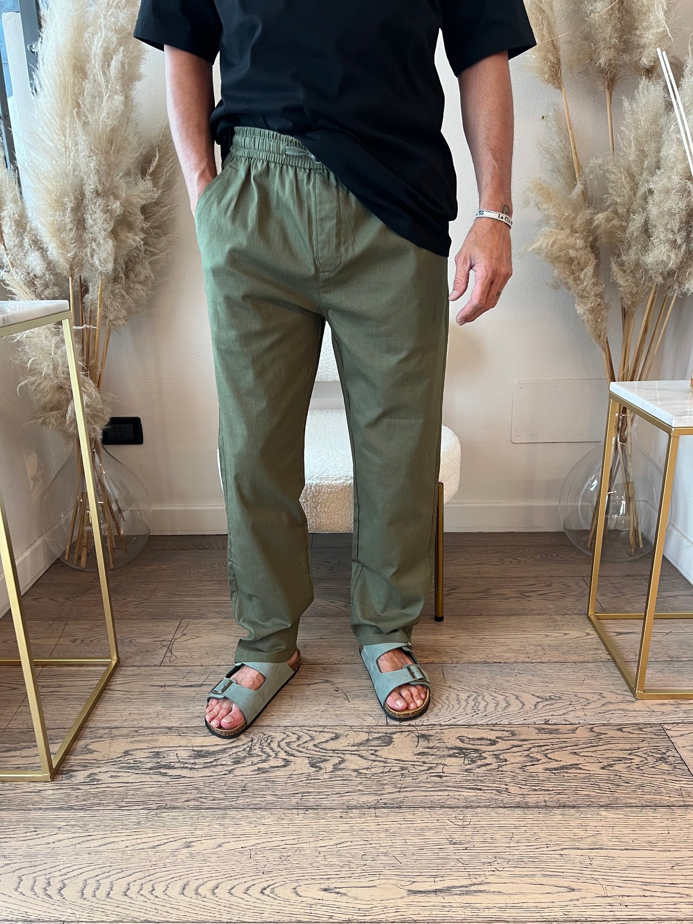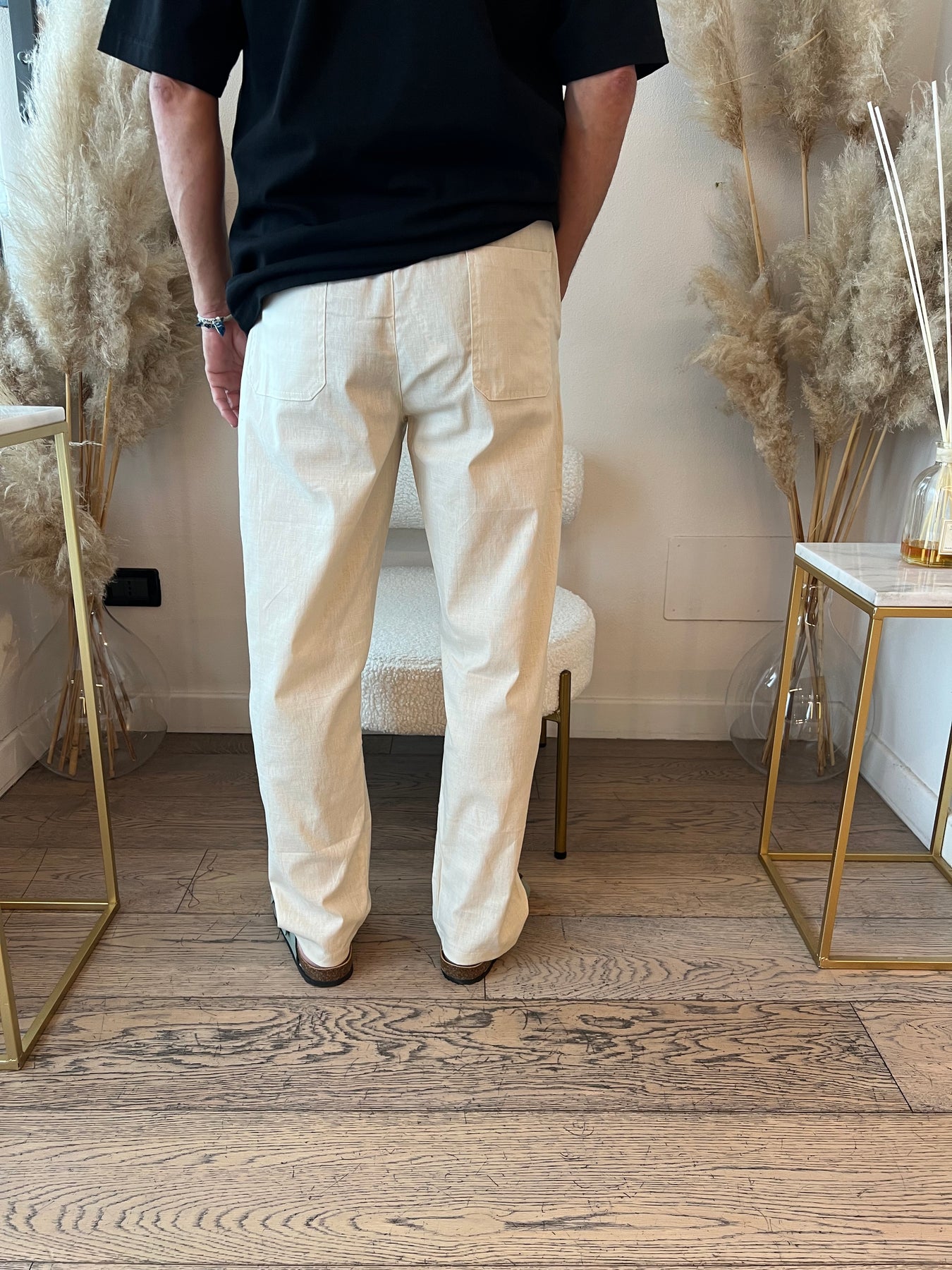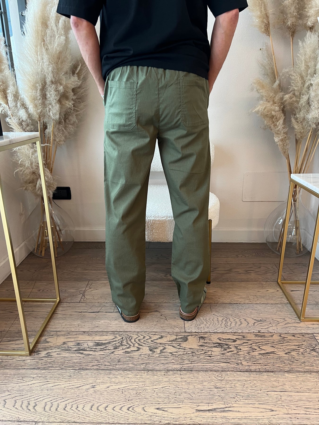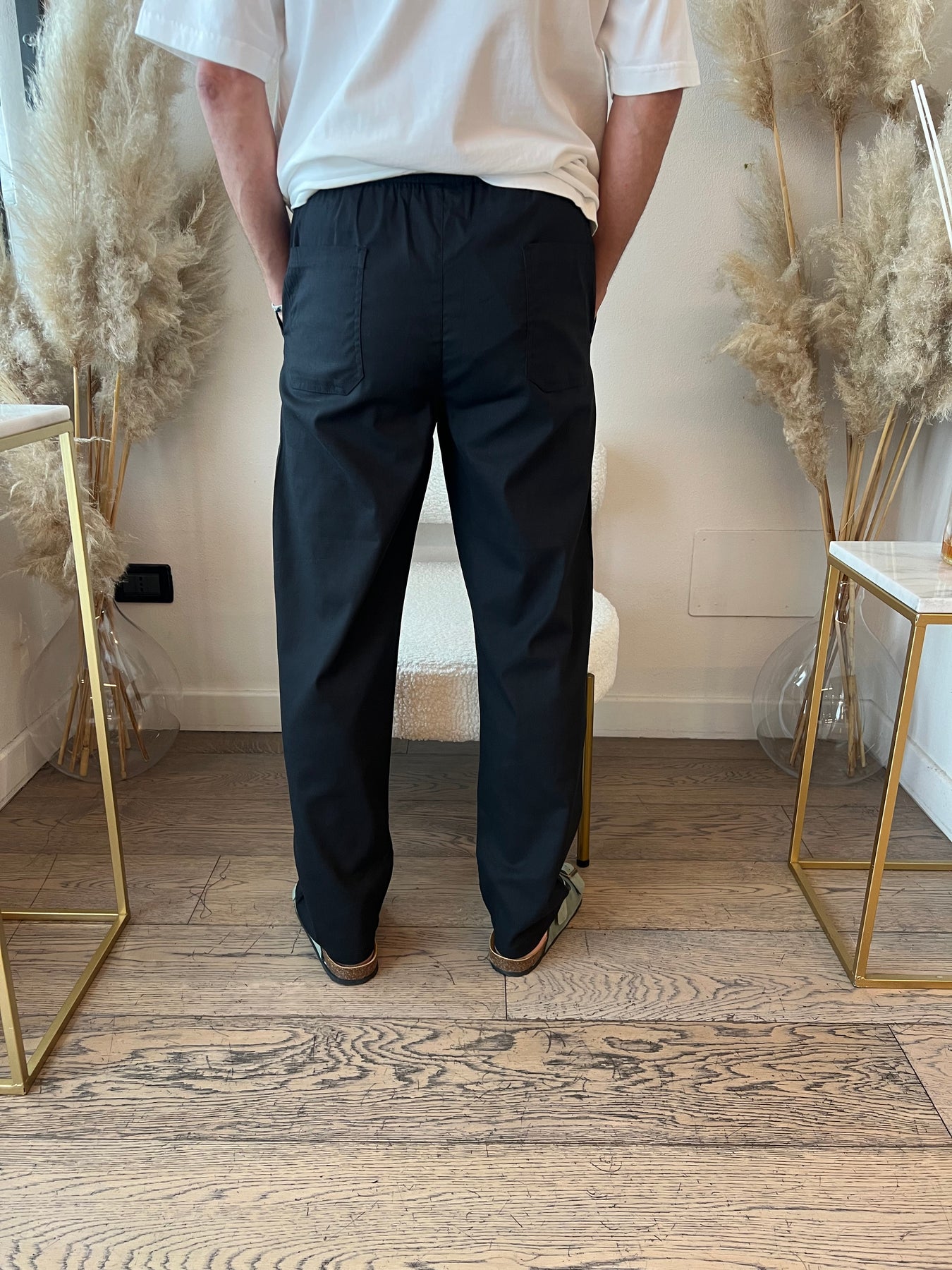 Pantaloni in cintone dal taglio dritto con elastico in vita.
